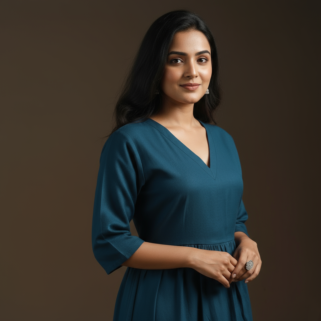 Tiered blue plain dress is simple, soft and comfortable. Made from breathable flex cotton, it feels light and easy on the skin, perfect for all-day wear. Its modern touch makes it suitable for casual outings or daily use a piece that beautifully combines comfort and effortless elegance for a stylish look.