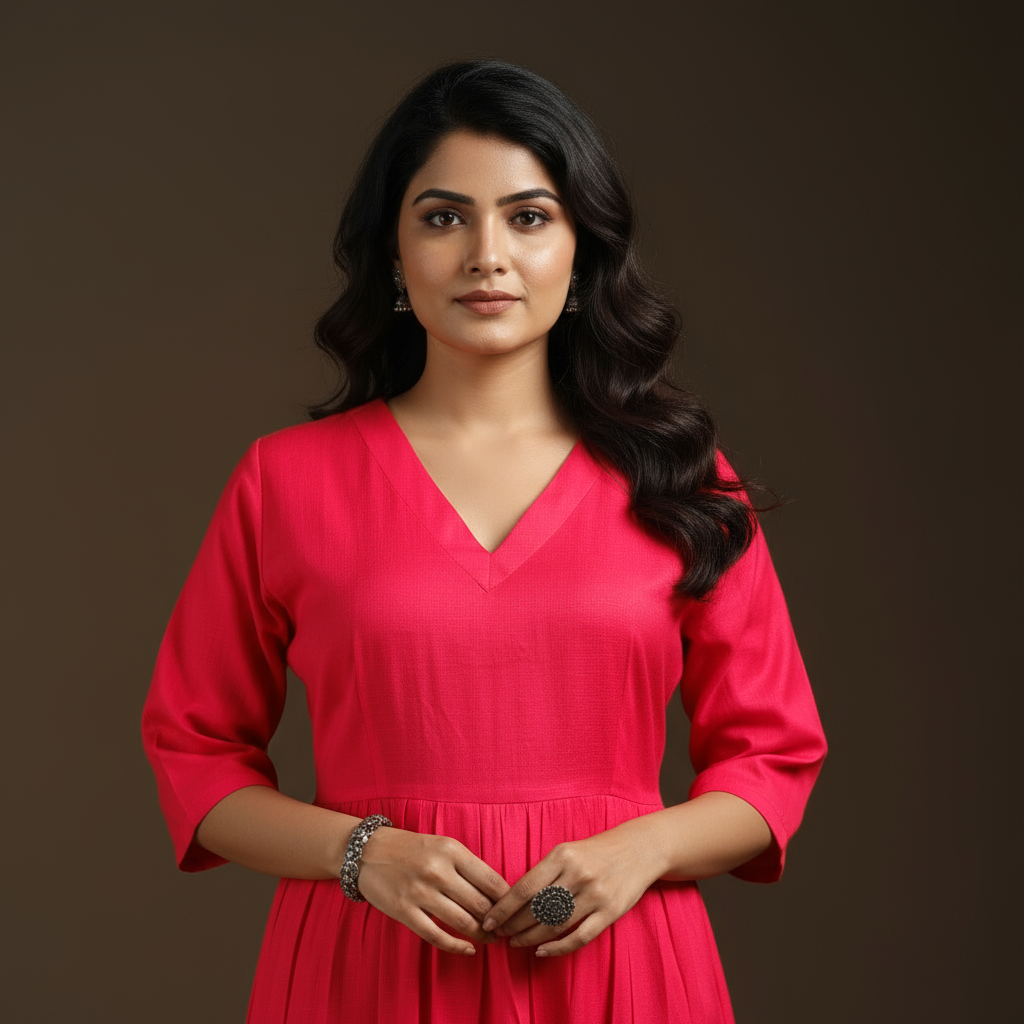 Tiered pink plain dress is simple, soft and comfortable. Made from breathable flex cotton, it feels light and easy on the skin, perfect for all-day wear. Its modern touch makes it suitable for casual outings or daily use a piece that beautifully combines comfort and effortless elegance for a stylish look.