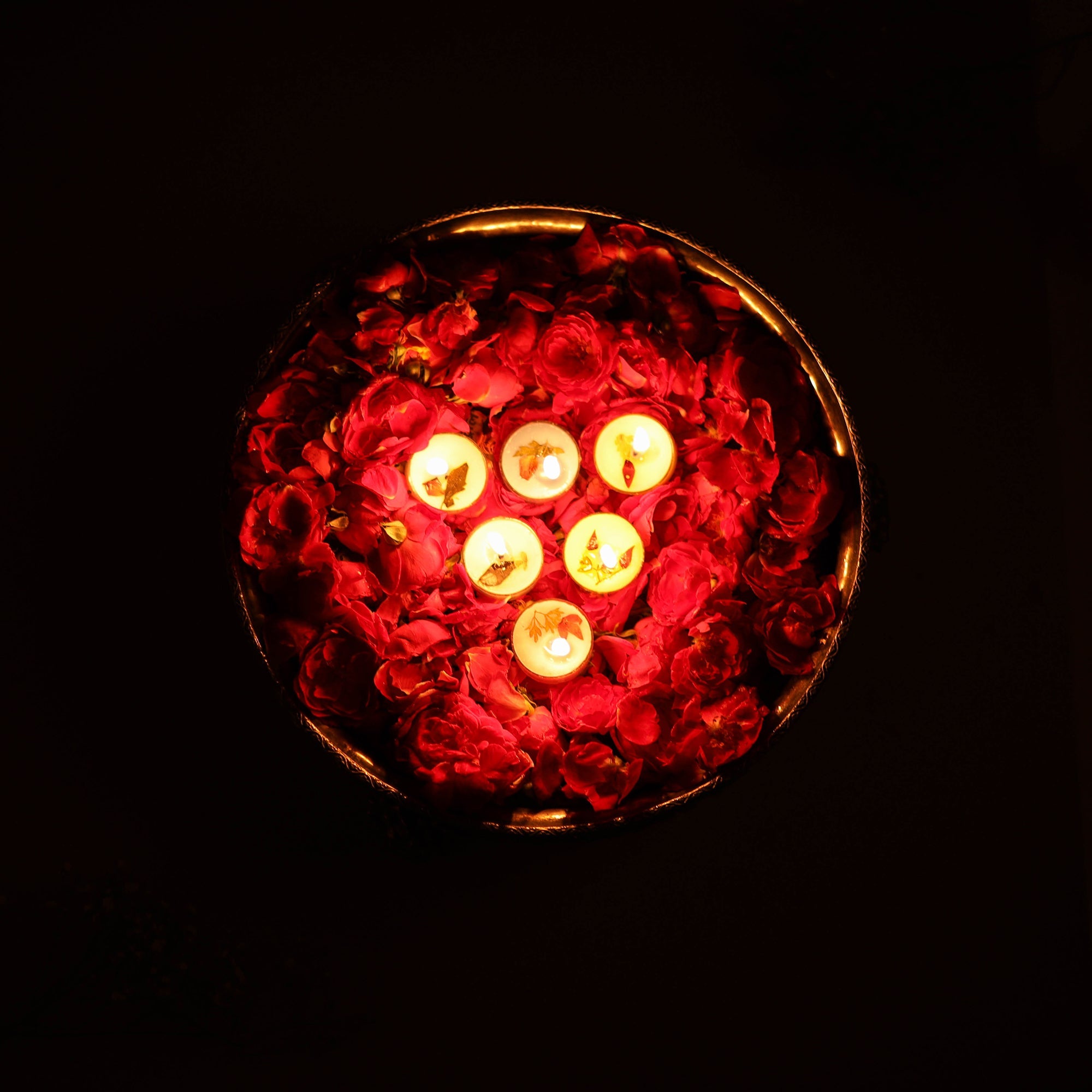 Each is individually and carefully hand poured. The flowers chosen are first dried and pressed before they are gently stuck onto the candles. These floating candles are specially shaped to look beautiful while floating in water. The effect they create is magical.