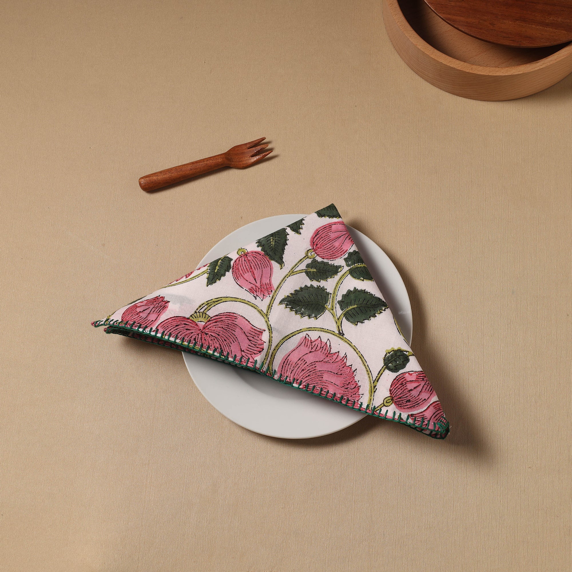 Enhance your dining experience with our pink floral block print cotton hand embroidery napkins, beautifully hand-embroidered by skilled artisans. Perfect for formal dinners or casual gatherings. This napkin is soft, pretty, absorbent and washable.
