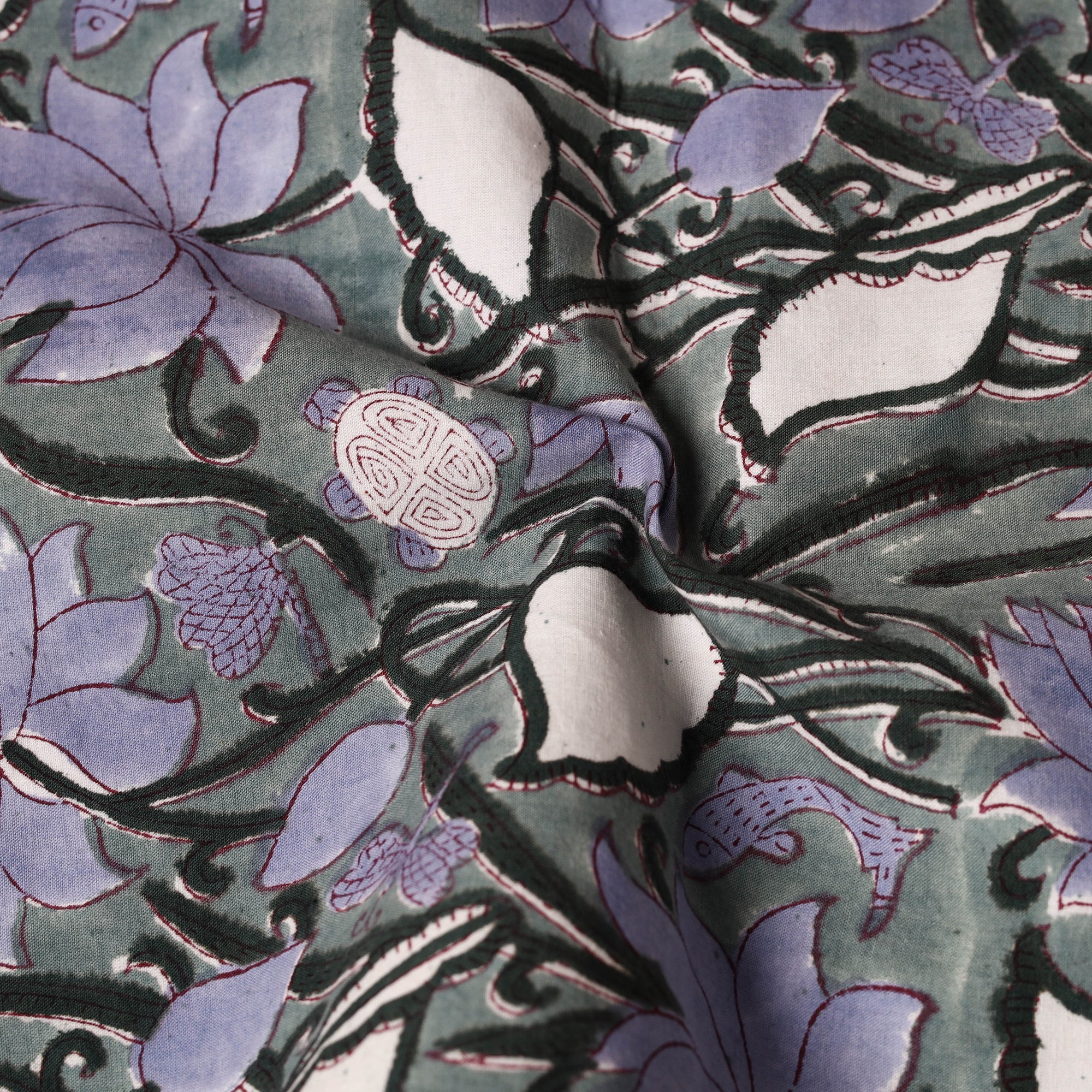 Purple - Sanganeri Block Print Handloom Pure Wool Fabric 02