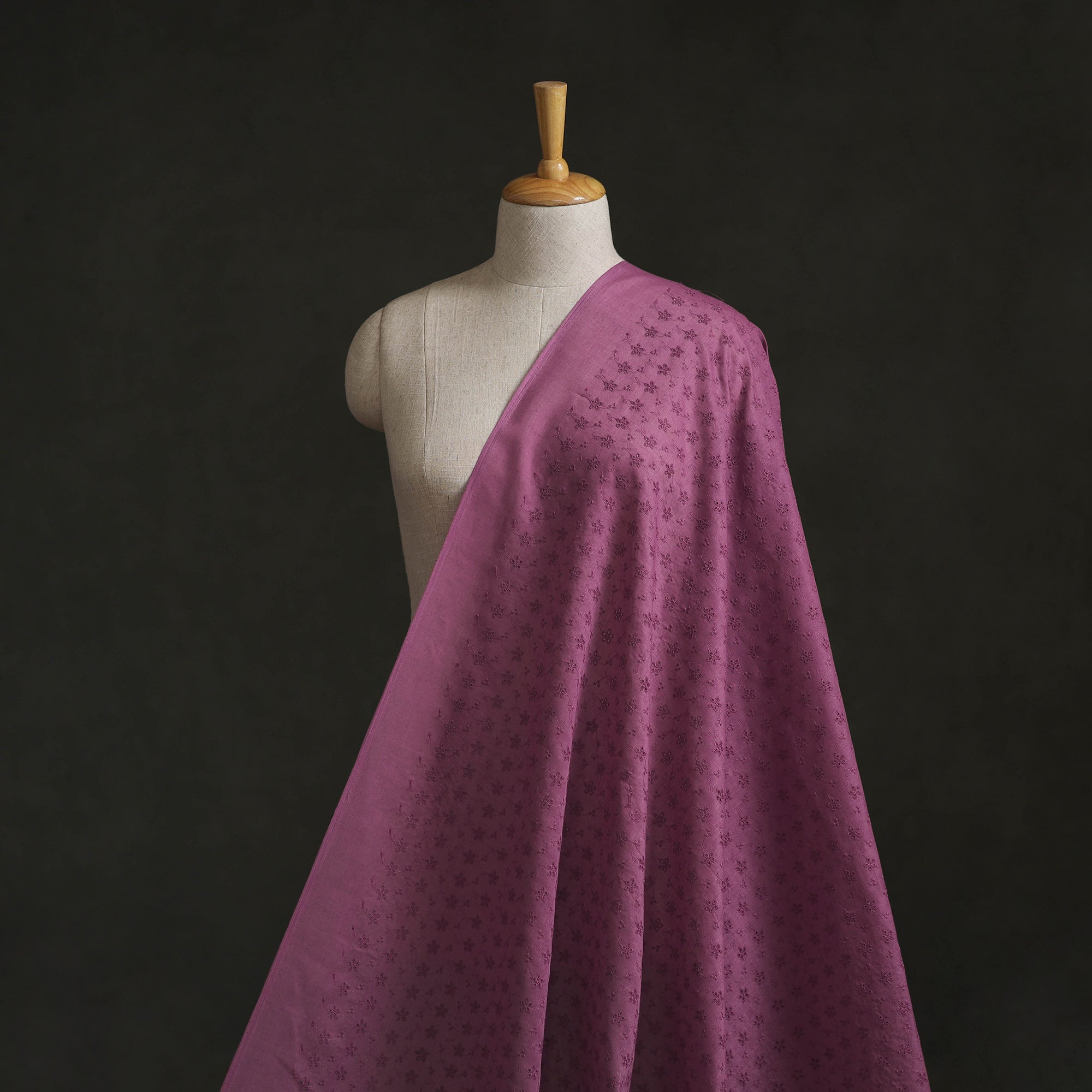 Floral embroidered cotton hakoba fabric from Tamil Nadu is known for its light, breathable feel and delicate cutwork detailing. Featuring fine eyelet patterns on a soft cotton base, it is ideal for blouses, kurtis, dresses and sarees, especially for summer wear. The fabric is made by first embroidering detailed patterns onto cotton, after which small sections are carefully cut to create the signature eyelet effect, giving Hakoba its airy texture, refined look and everyday comfort.
