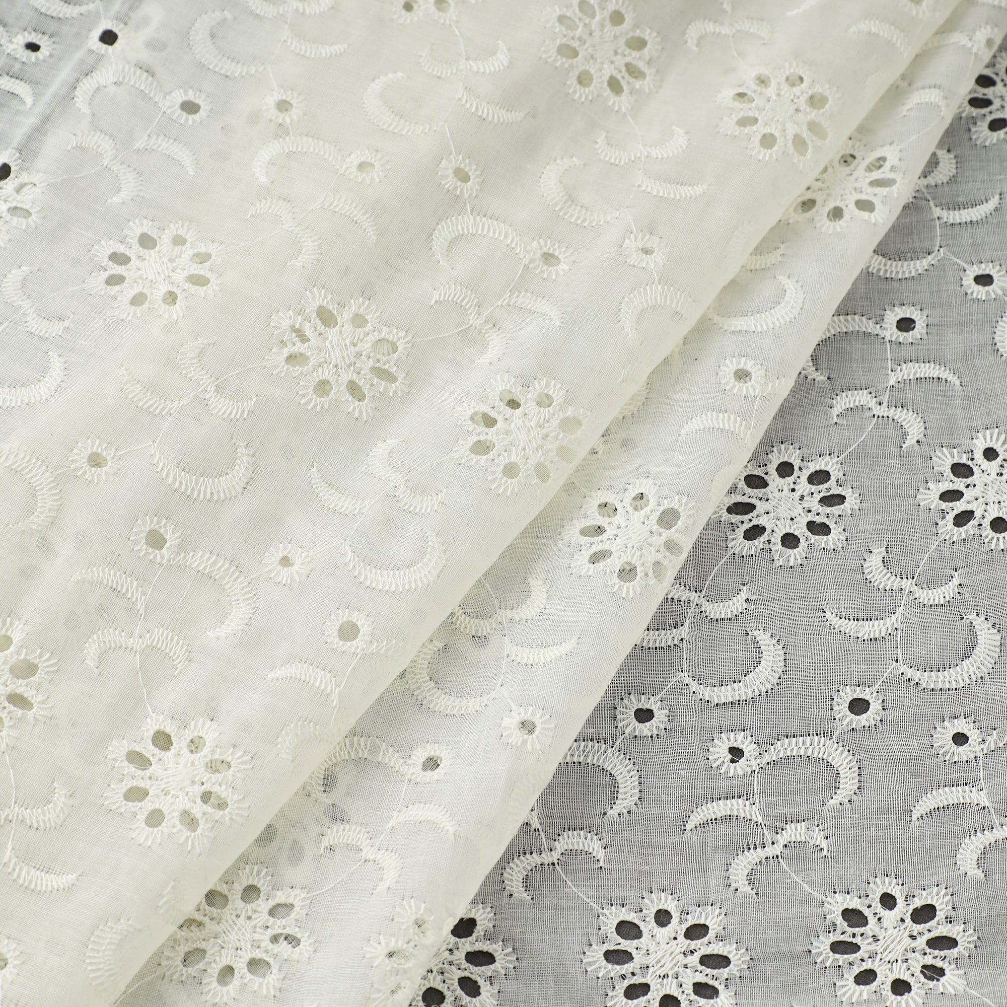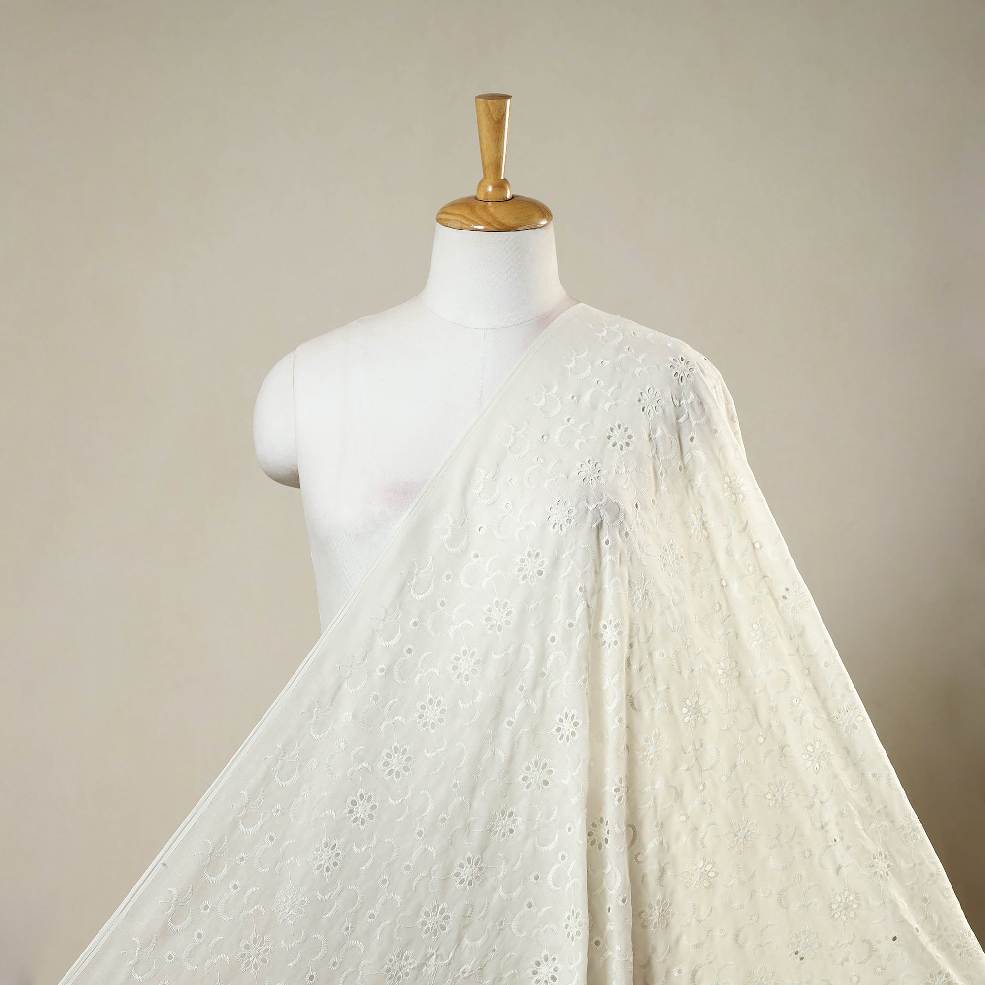 This floral embroidered cotton hakoba fabric from Barmer, Rajasthan, blends elegance with comfort. Known for its airy cutwork embroidery and intricate eyelet patterns, this cotton hakoba fabric is a popular choice for blouses, kurtis, sarees, and dresses.