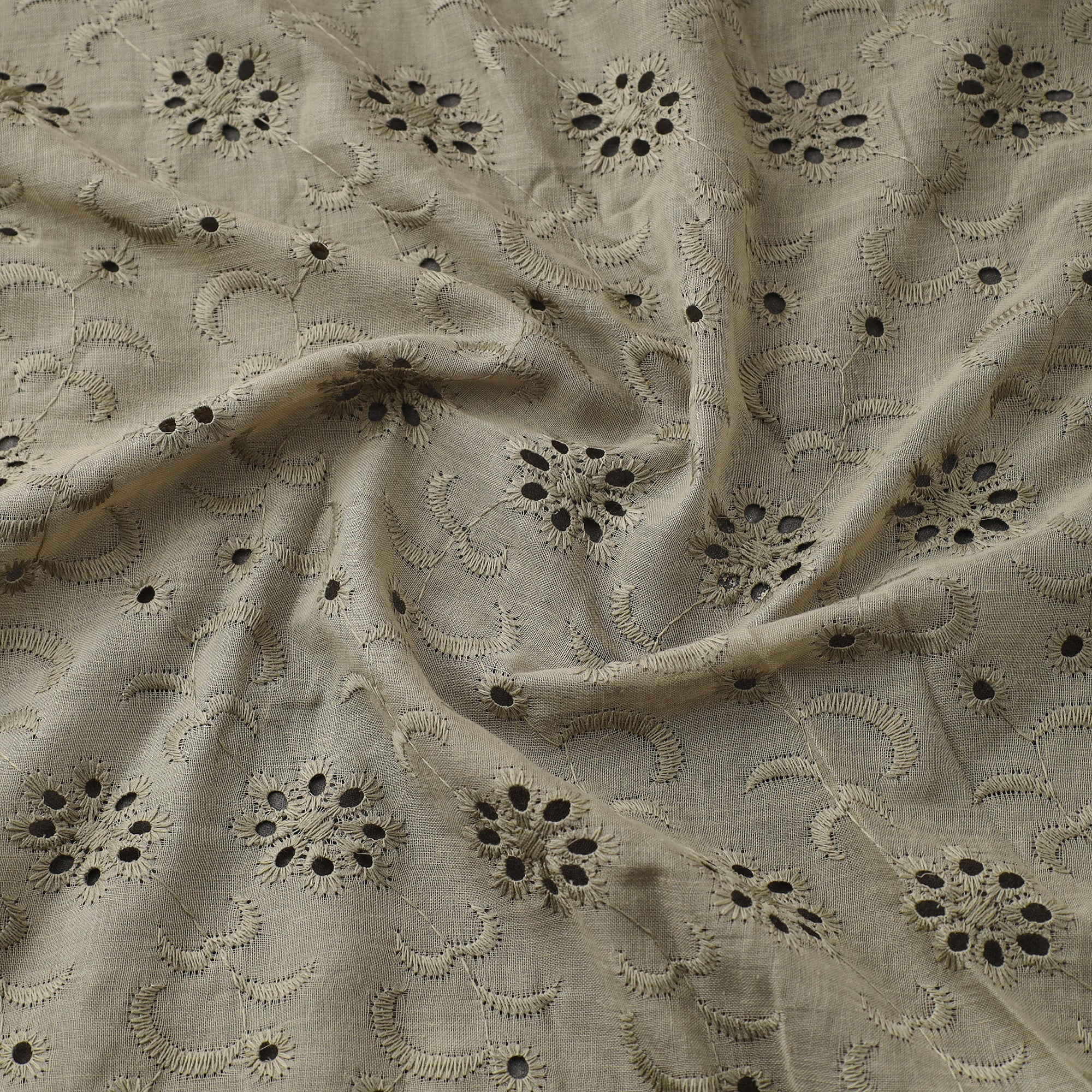 This floral embroidered green cotton hakoba fabric from Barmer, Rajasthan, blends elegance with comfort. Known for its airy cutwork embroidery and intricate eyelet patterns, this cotton hakoba fabric is a popular choice for blouses, kurtis, sarees, and dresses.