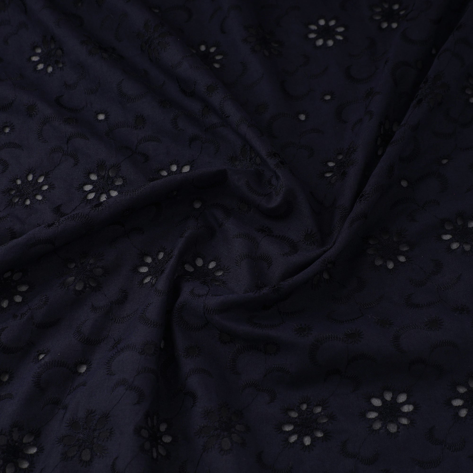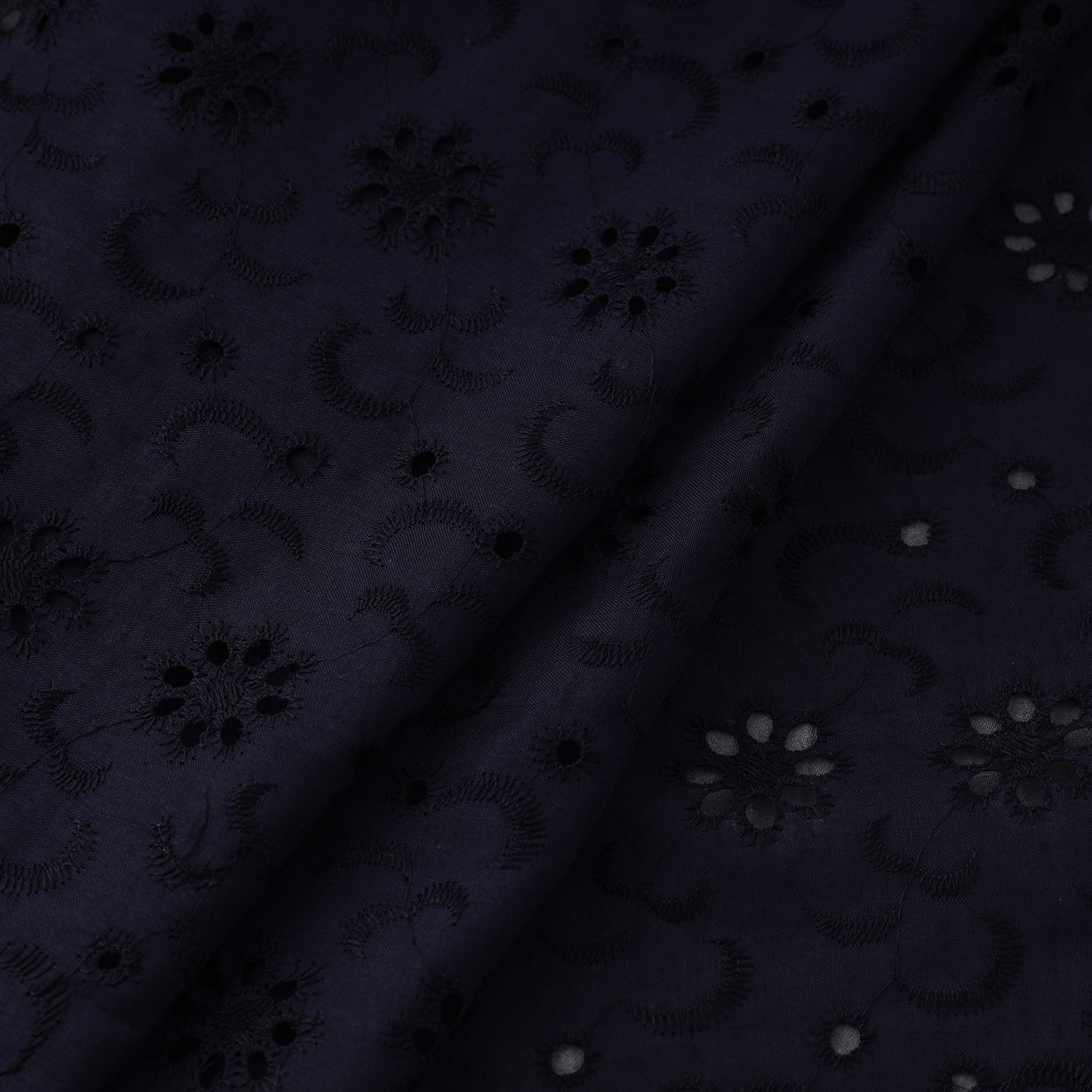 This floral embroidered blue cotton hakoba fabric from Barmer, Rajasthan, blends elegance with comfort. Known for its airy cutwork embroidery and intricate eyelet patterns, this cotton hakoba fabric is a popular choice for blouses, kurtis, sarees, and dresses.