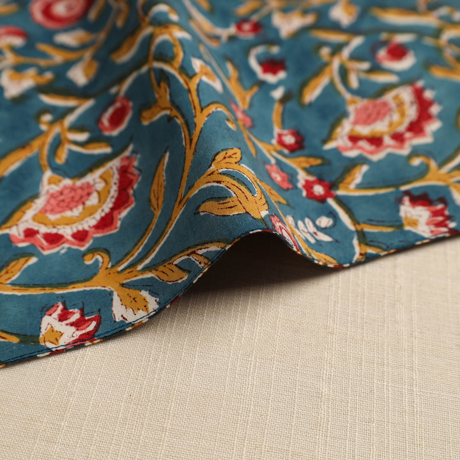Green - Hand Block Print Slub Cotton Sanganeri Fabric 12
