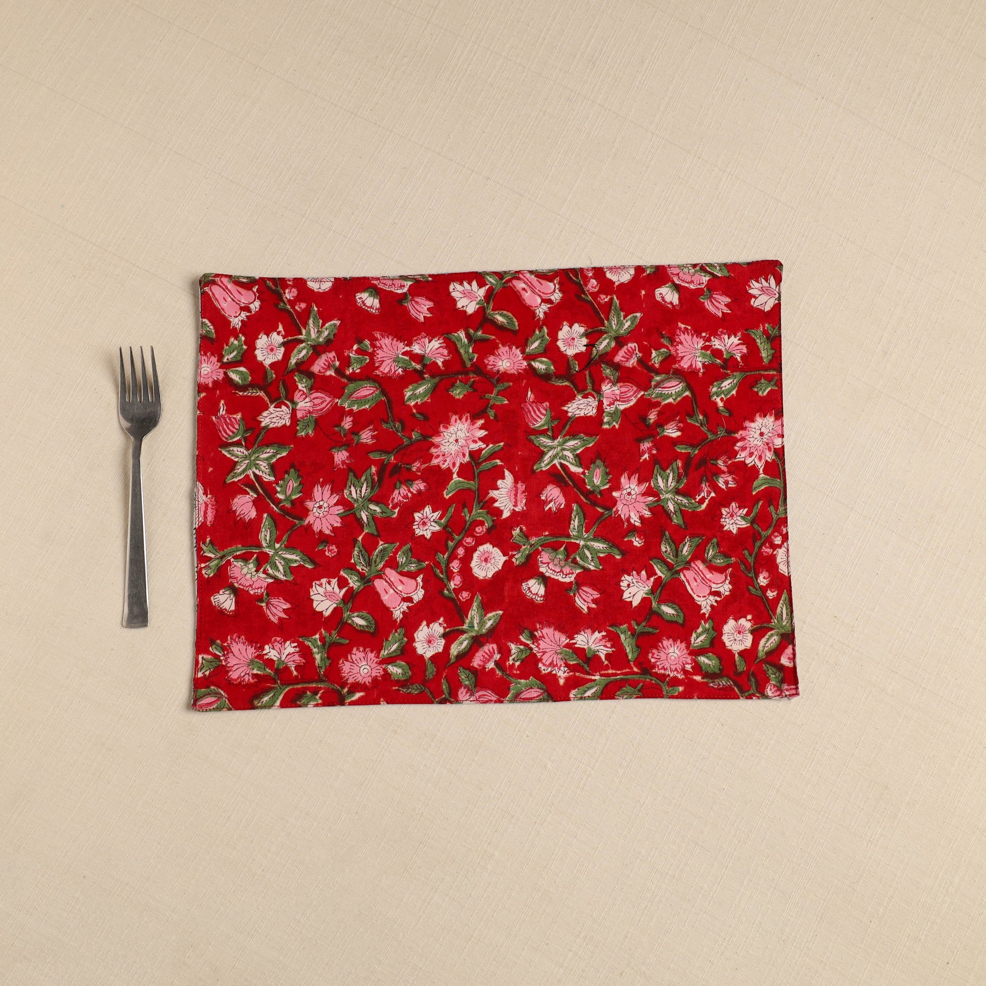 Add artisanal charm to your home with this red floral print cotton reversible table mat. Crafted by iTokri's artisans, perfect for dining or coffee tables, it protects surfaces while enhancing decor. |
