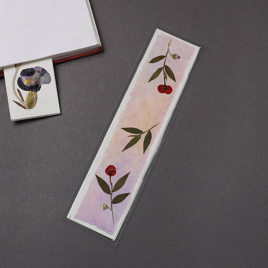 This flower art handmade paper bookmark perfect for book lovers. This bookmark is crafted using recycled cotton and rice straw, featuring intricate pressed flowers and leaves that add a personal, eco-friendly touch.
