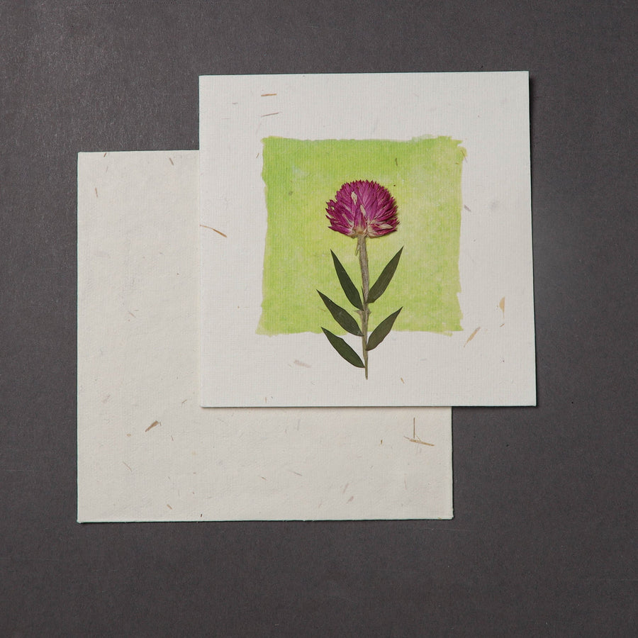Capture the beauty of nature with flower art handmade greeting card. This card is crafted using recycled cotton and rice straw, featuring intricate pressed flowers and leaves that add a personal, eco-friendly touch. This card come with a matching envelope and are a true reflection of sustainable craftsmanship.