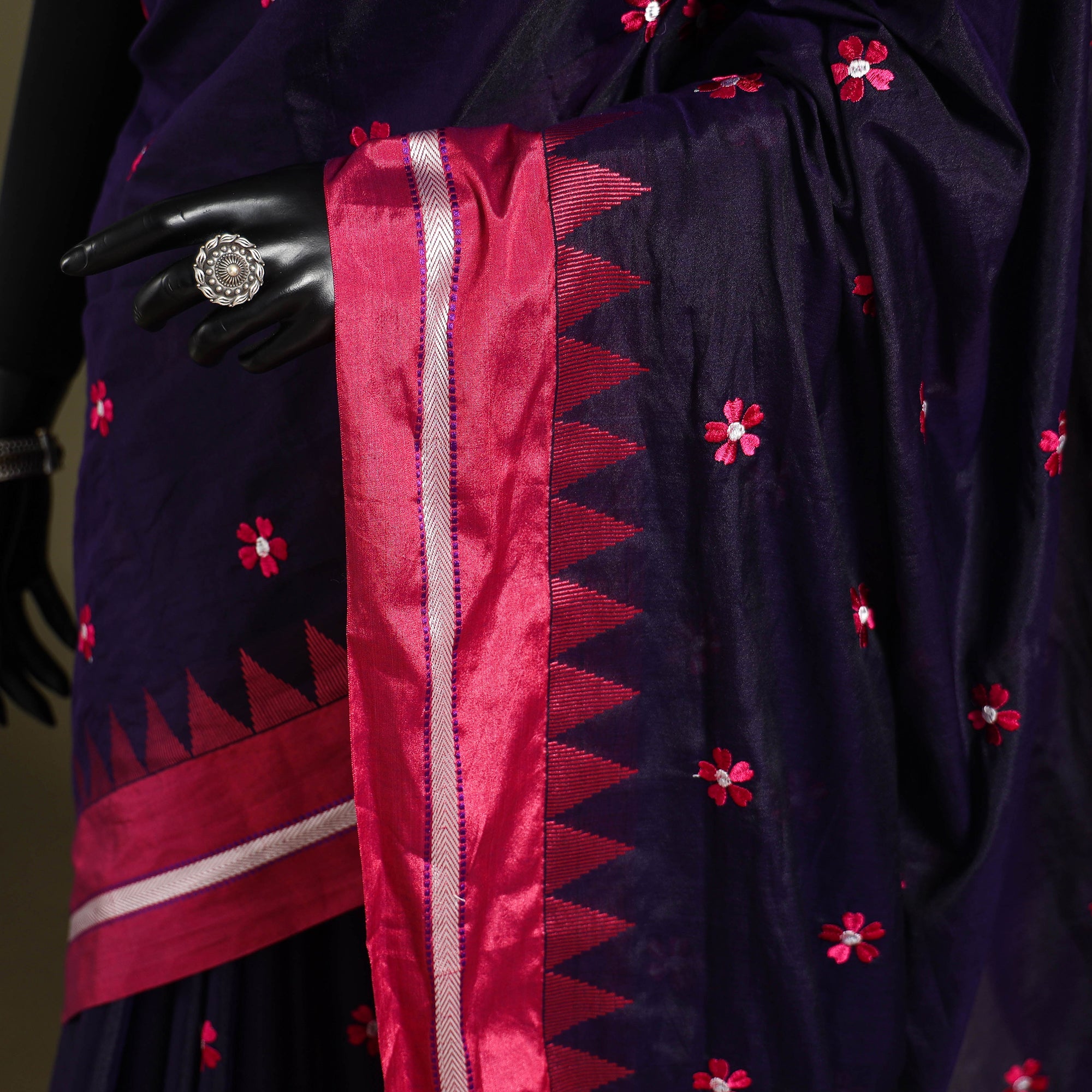Purple - Handloom Cotton x Viscose Ilkal Saree With Gayatri Border 28