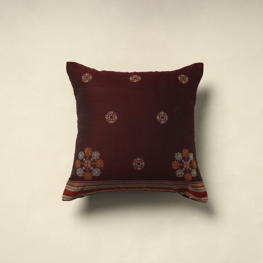 Maroon - Gavanti Kasuti Hand Embroidery Cushion Cover (16 x 16 in) 05