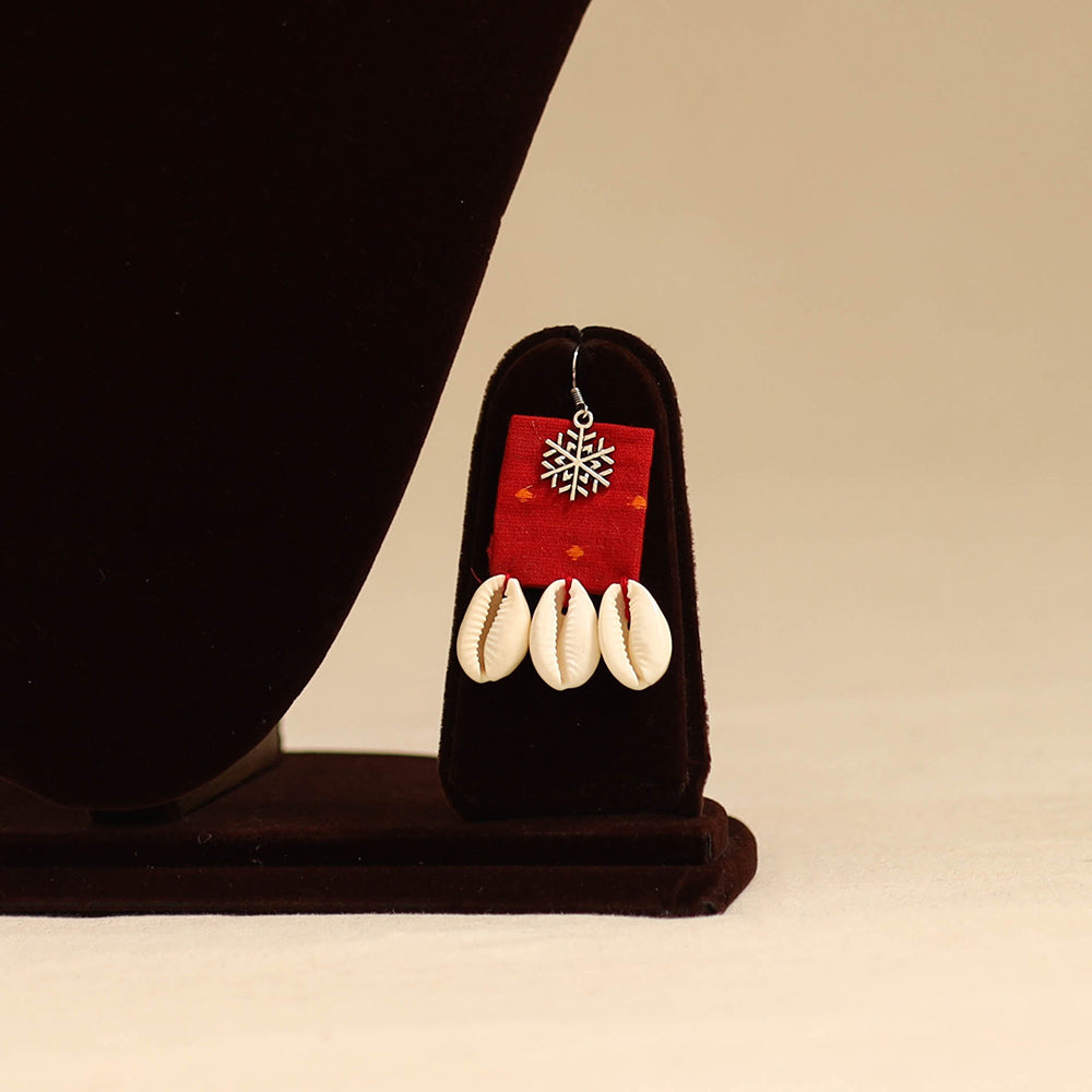 Enhance your style with this red choker necklace set, featuring a handcrafted fabric base adorned with german silver accents and matching earrings. Perfect for both ethnic and modern outfits, the shell detailing adds a touch of rustic charm, making it a true statement accessory.