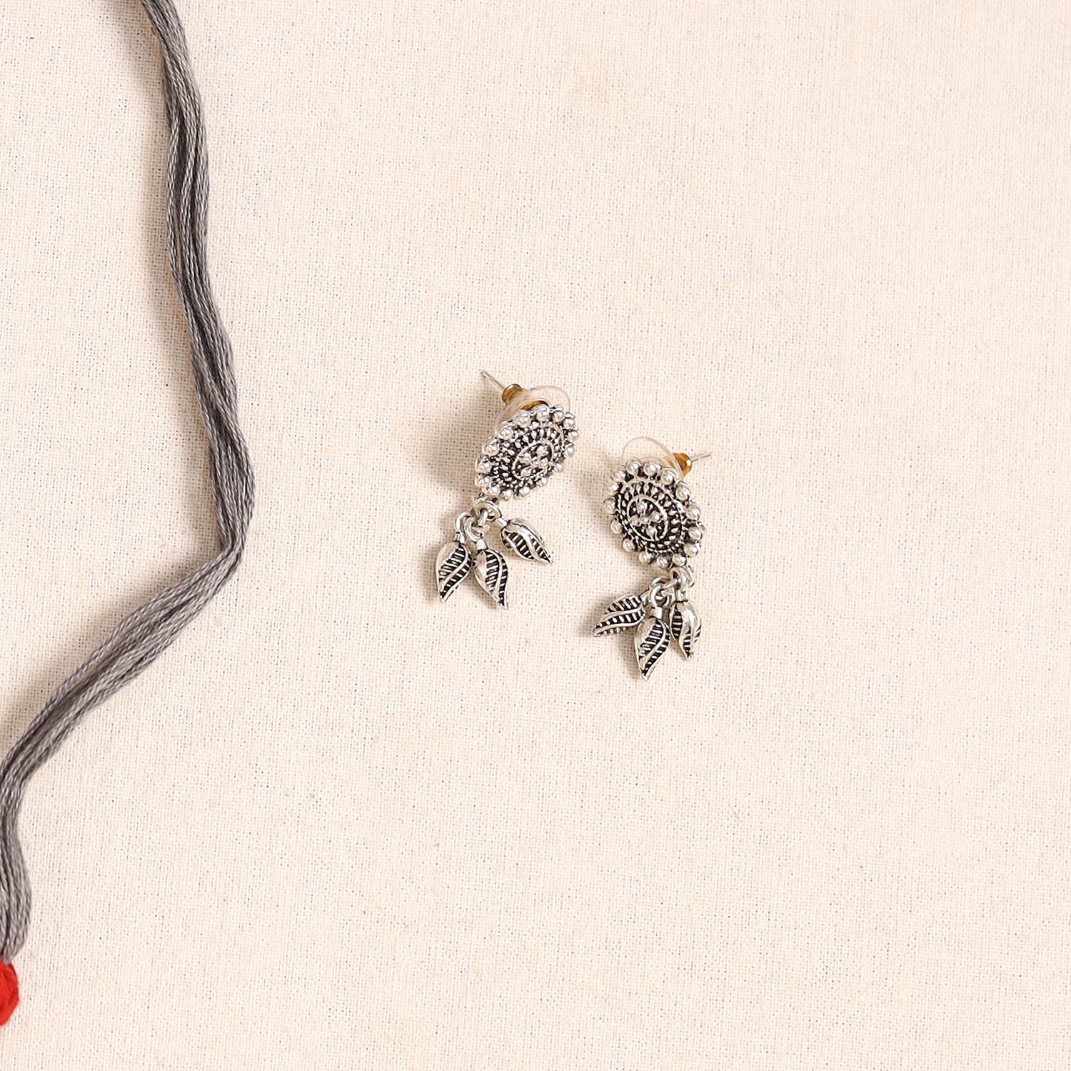 Add a touch of handmade charm to your look with this grey fabart necklace set, adorned with thread beads and german silver. Paired with matching earrings, it completes your look effortlessly. Handcrafted by skilled artisans, this set is ideal for festive occasions, cultural gatherings, or simply to add a unique flair to your everyday style.