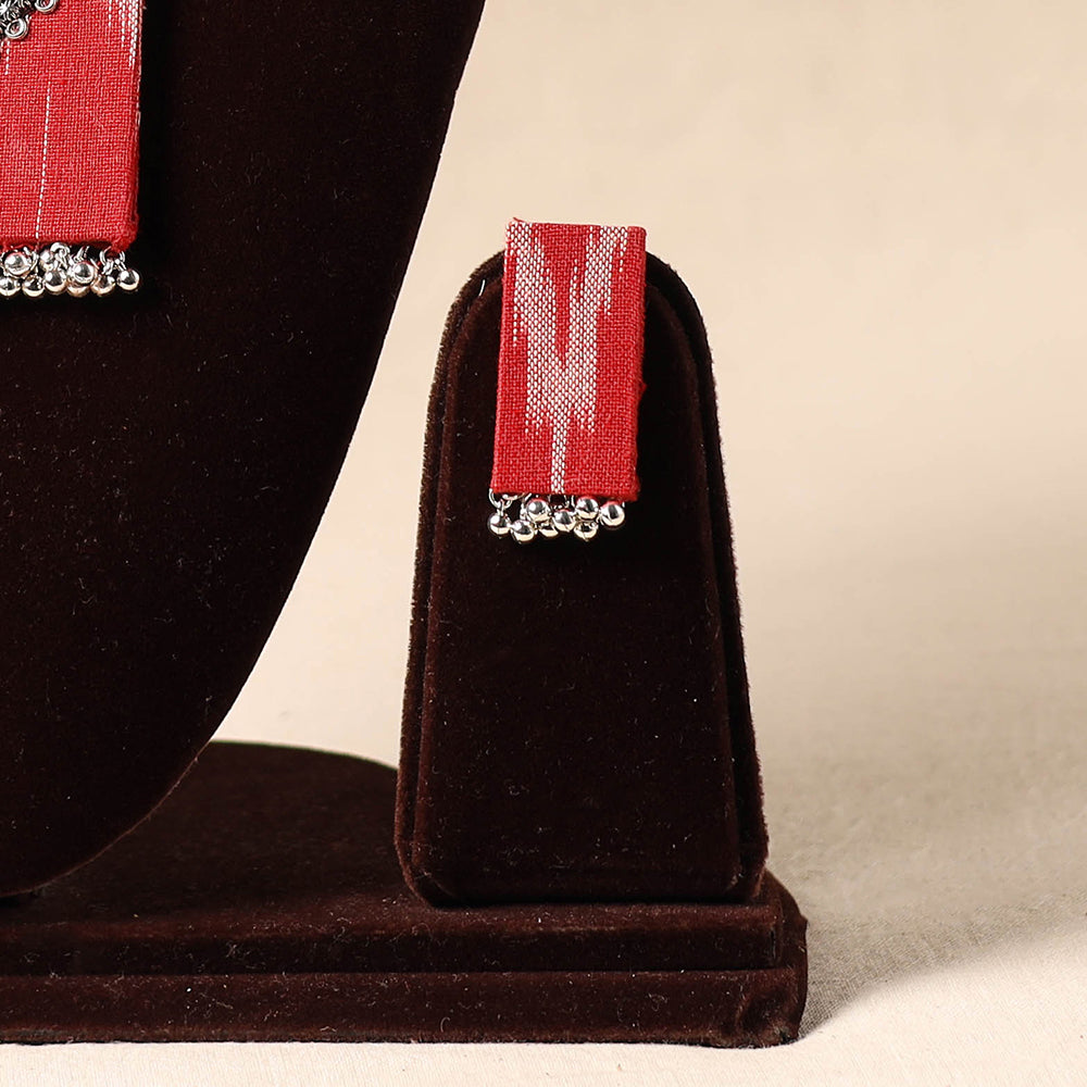 Add a touch of handmade charm with this red necklace set, crafted from thread and adorned with a fabric pendant accented in german silver. It comes with matching earrings to complete your look. Lightweight and artisan-made, it pairs effortlessly with traditional outfits. Ideal for festive gatherings, cultural functions, or simply to bring a unique touch to your everyday style.
