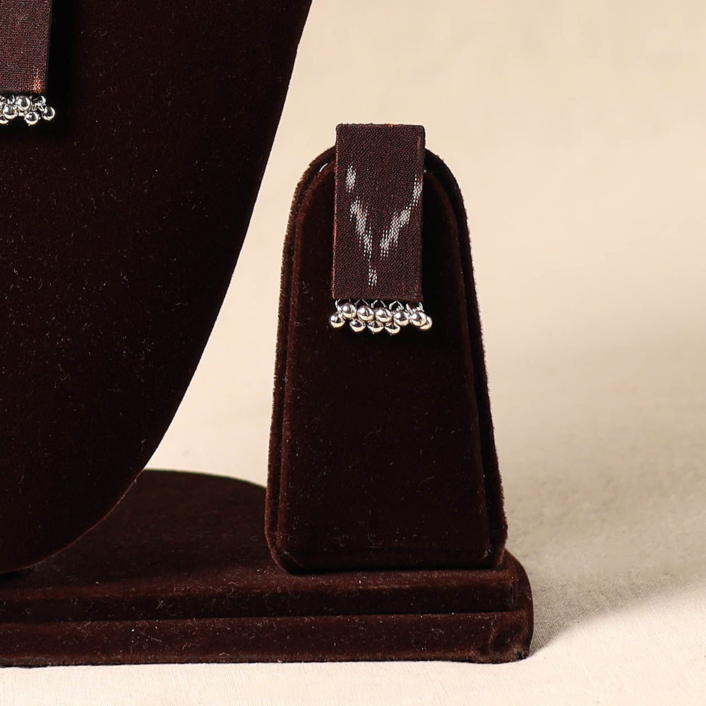 Add a touch of handmade charm with this maroon necklace set, crafted from thread and adorned with a fabric pendant accented in german silver. It comes with matching earrings to complete your look. Lightweight and artisan-made, it pairs effortlessly with traditional outfits. Ideal for festive gatherings, cultural functions, or simply to bring a unique touch to your everyday style.