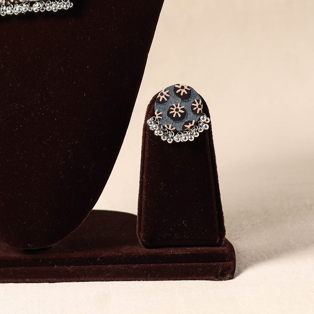 Add a touch of handmade charm with this grey necklace set, crafted from thread and adorned with a fabric pendant accented in german silver. It comes with matching earrings to complete your look. Lightweight and artisan-made, it pairs effortlessly with traditional outfits. Ideal for festive gatherings, cultural functions, or simply to bring a unique touch to your everyday style.
