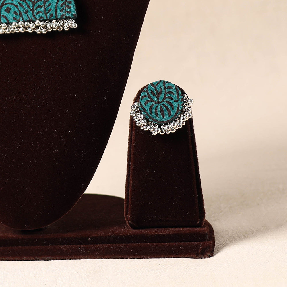 Add a touch of handmade charm with this green necklace set, crafted from thread and adorned with a fabric pendant accented in german silver. It comes with matching earrings to complete your look. Lightweight and artisan-made, it pairs effortlessly with traditional outfits. Ideal for festive gatherings, cultural functions, or simply to bring a unique touch to your everyday style.