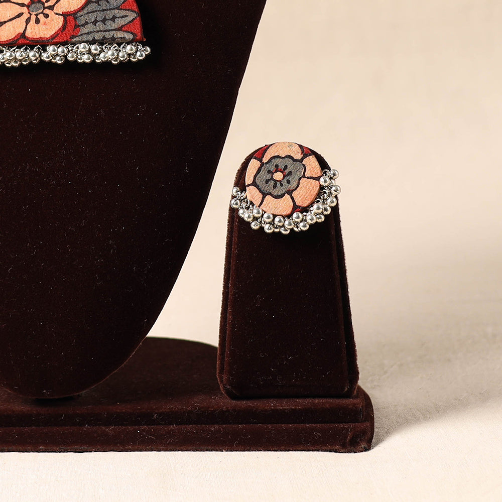Add a touch of handmade charm with this red necklace set, crafted from thread and adorned with a fabric pendant accented in german silver. It comes with matching earrings to complete your look. Lightweight and artisan-made, it pairs effortlessly with traditional outfits. Ideal for festive gatherings, cultural functions, or simply to bring a unique touch to your everyday style.