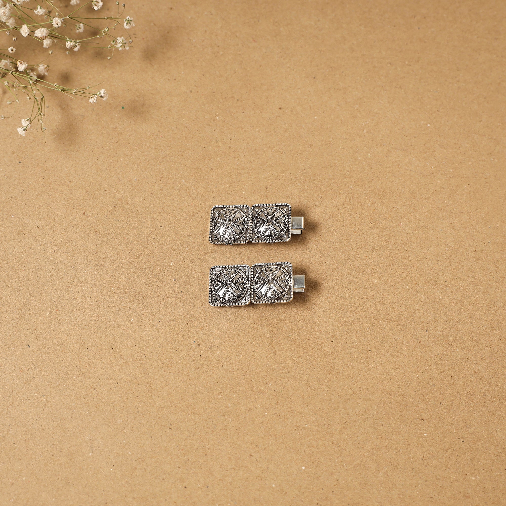 Handmade white german silver hair clip (set of 2), known for its silver-like finish and long-lasting durability. Created by artisans, these hair clips offer a firm hold and are ideal for everyday hair styling.