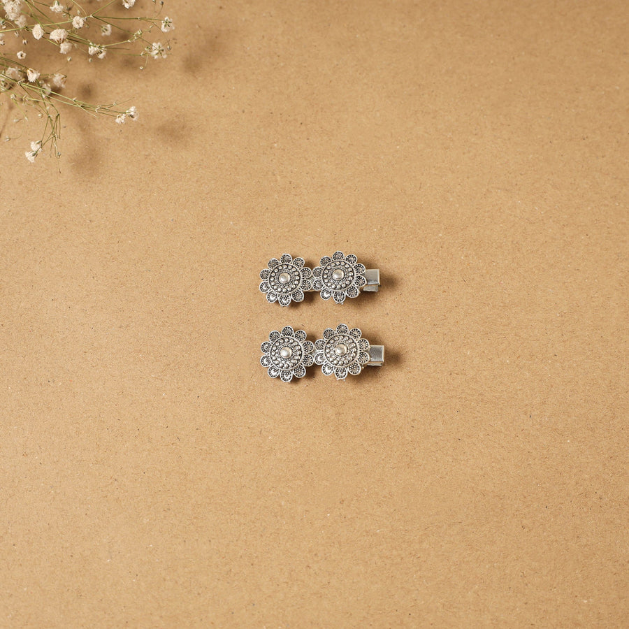 Handmade white german silver hair clip (set of 2), known for its silver-like finish and long-lasting durability. Created by artisans, these hair clips offer a firm hold and are ideal for everyday hair styling.