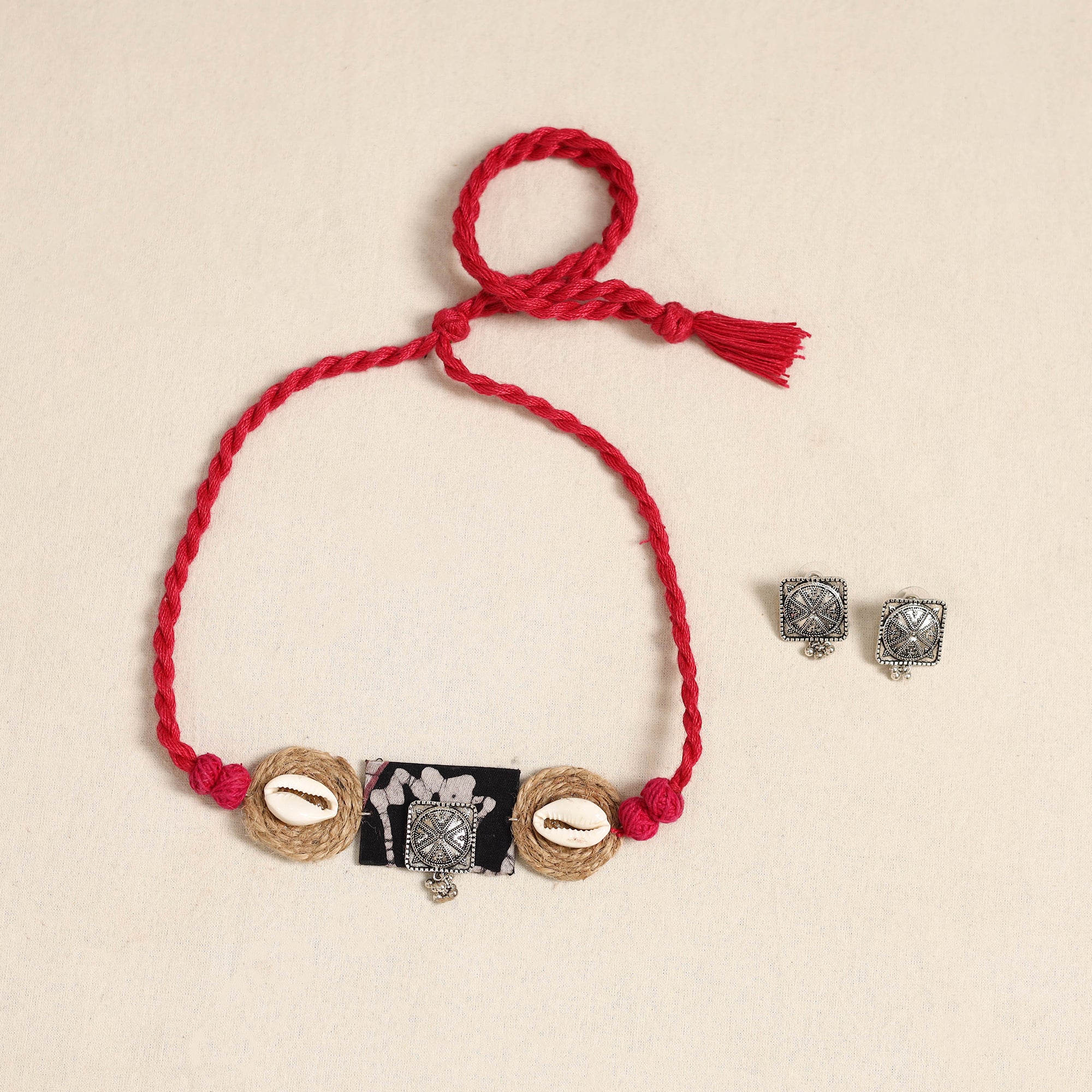 Elevate your ethnic look with this handcrafted red necklace set. The vibrant combination of jute, german silver, thread beads, fabart, and shells adds artistic flair to the design. Paired with matching earrings, it’s perfect for festive occasions, cultural events, or adding a distinctive charm to your everyday outfits.