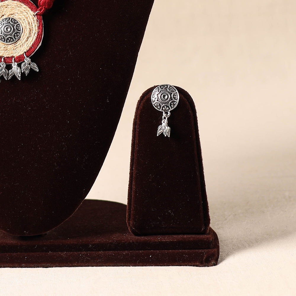 Add a touch of handmade charm with this red necklace set, made from thread and featuring a fabric pendant with german silver. The set also includes matching earrings to complete your look. Crafted by skilled artisans, it’s lightweight and pairs effortlessly with traditional outfits. Perfect for festive occasions, cultural functions, or simply for adding a unique flair to your everyday look.