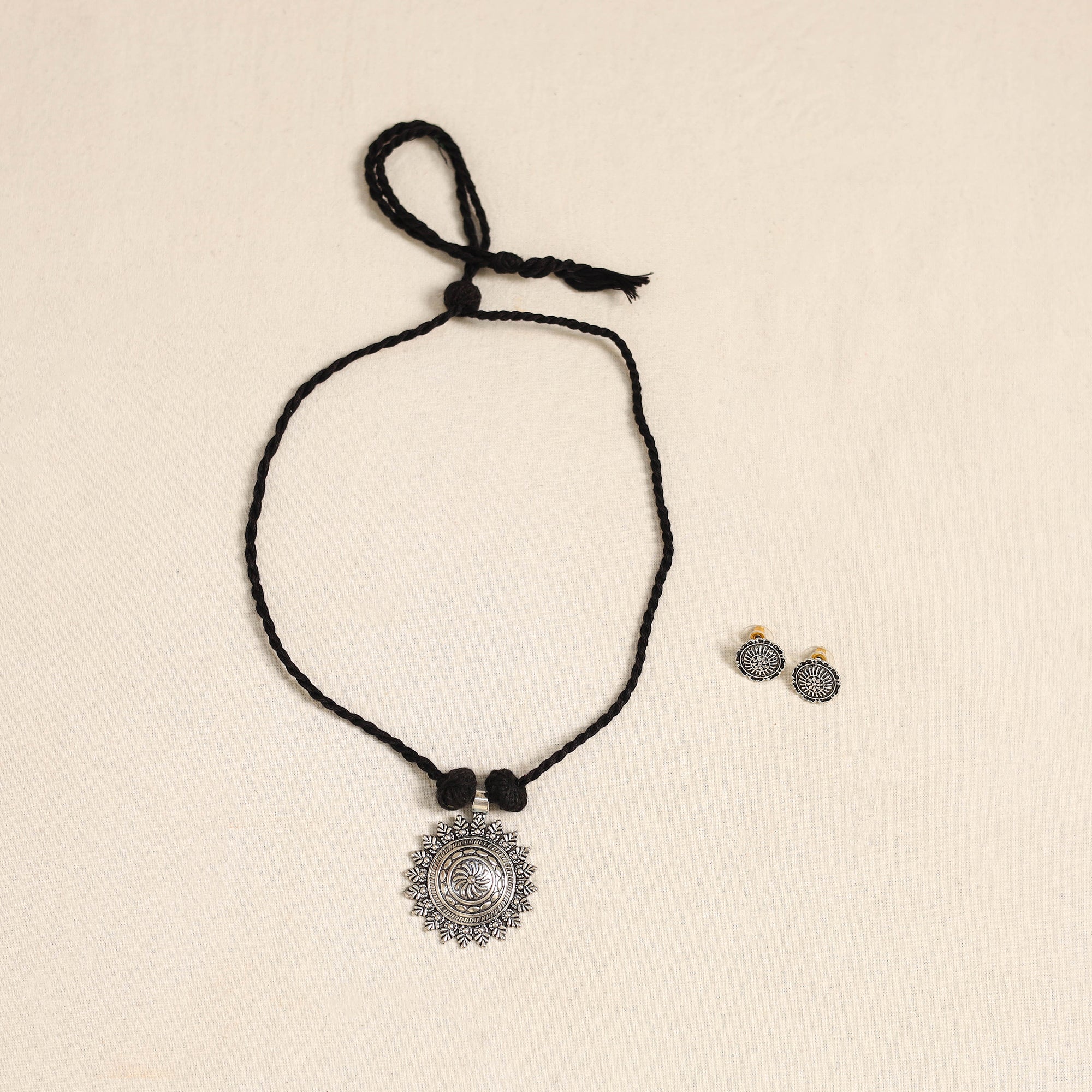 Elevate your ethnic look with this handcrafted black necklace set featuring a german silver pendant known for its durability and antique finish. Paired with matching earrings, it’s perfect for festive occasions, cultural events, or adding a distinctive charm to everyday outfits.