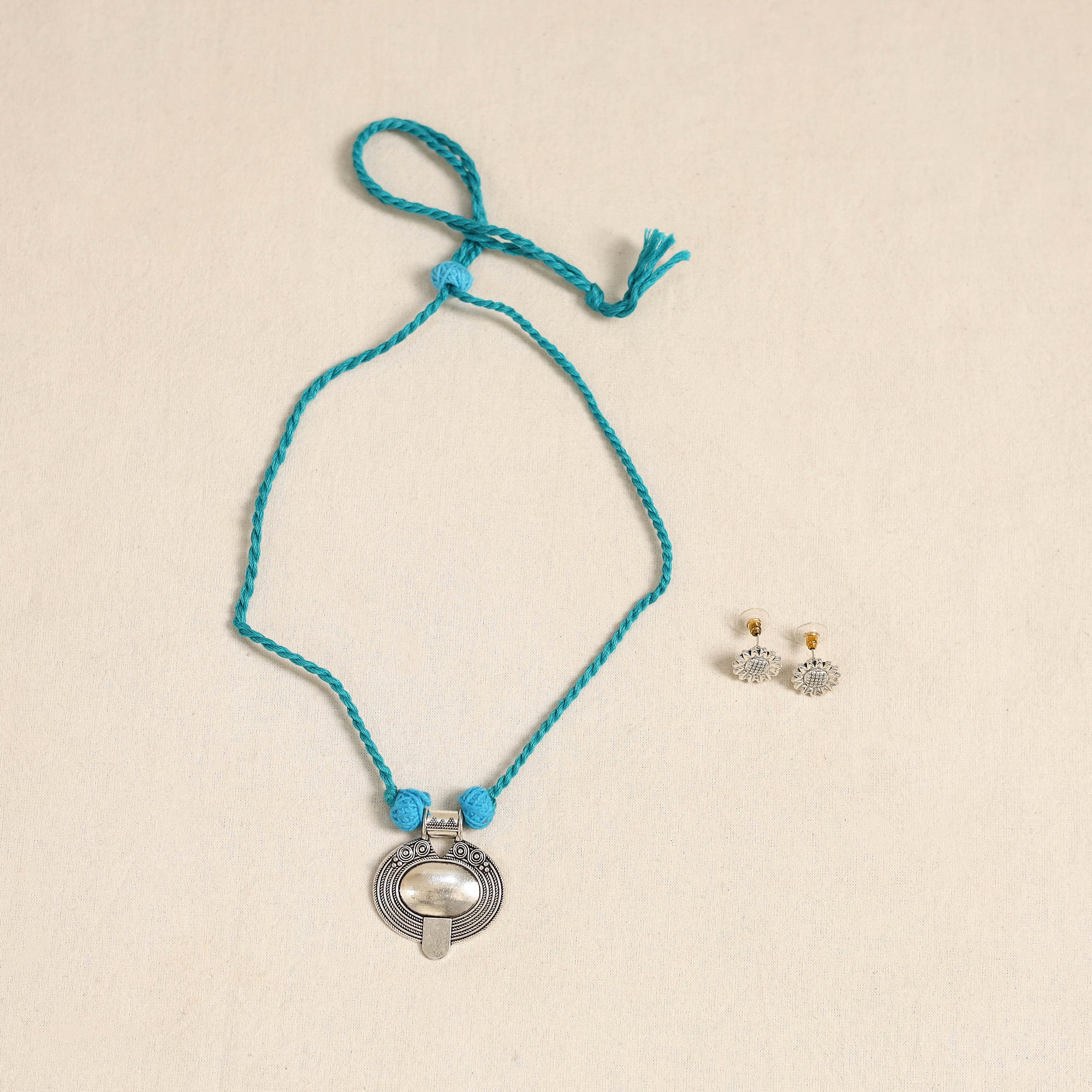 Elevate your ethnic look with this handcrafted blue necklace set featuring a german silver pendant known for its durability and antique finish. Paired with matching earrings, it’s perfect for festive occasions, cultural events, or adding a distinctive charm to everyday outfits.