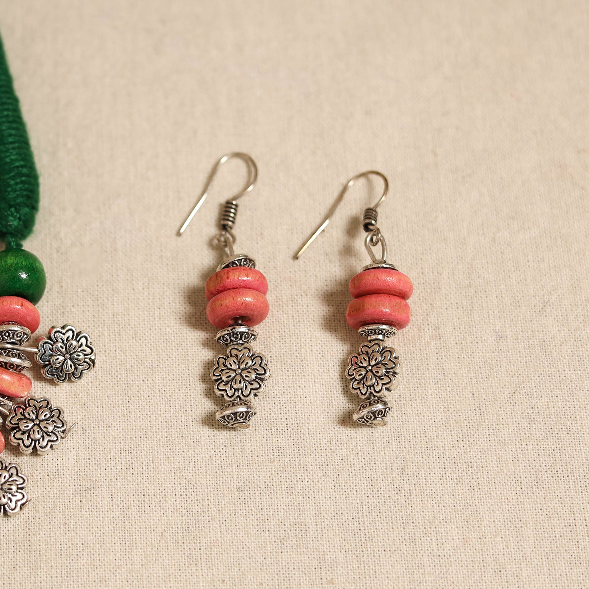 Elevate your ethnic look with this orange handcrafted necklace set, made from german silver and wooden beads. Paired with matching earrings, it’s a versatile pick for festive dressing, cultural functions, or simply adding elegance to casual everyday attire.