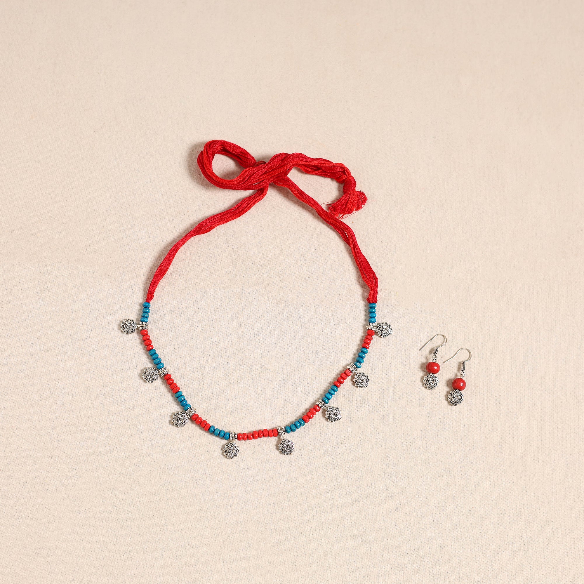 Elevate your ethnic look with this handcrafted red necklace set, made from german silver and wooden beads. Paired with matching earrings, it’s perfect for festive occasions, cultural events, or adding a distinctive charm to your everyday outfits.