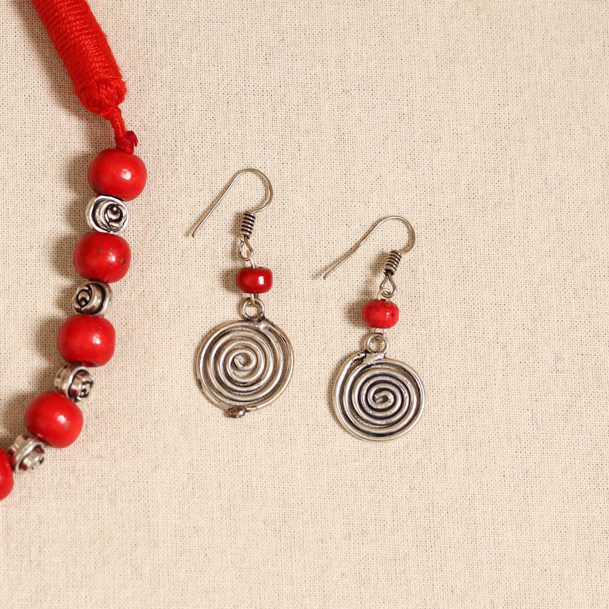 Elevate your ethnic look with this red handcrafted necklace set, made from german silver and wooden beads. Paired with matching earrings, it’s a versatile pick for festive dressing, cultural functions, or simply adding elegance to casual everyday attire.
