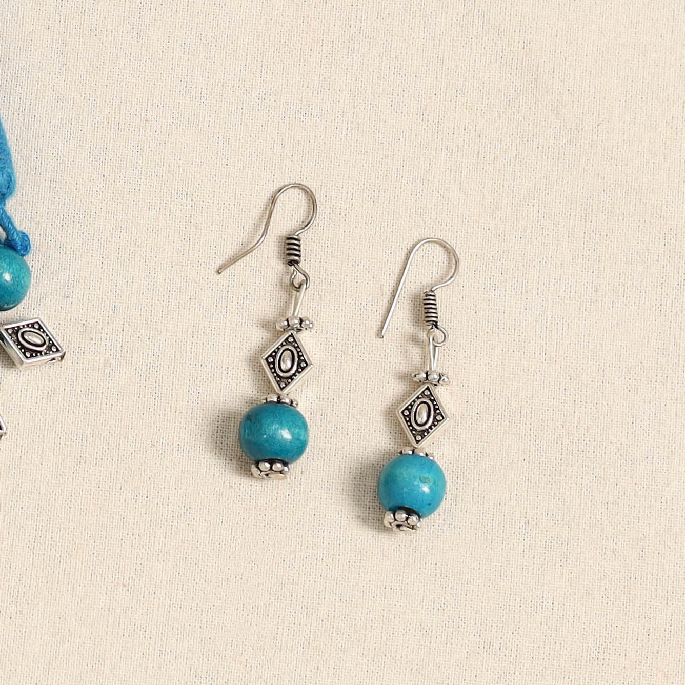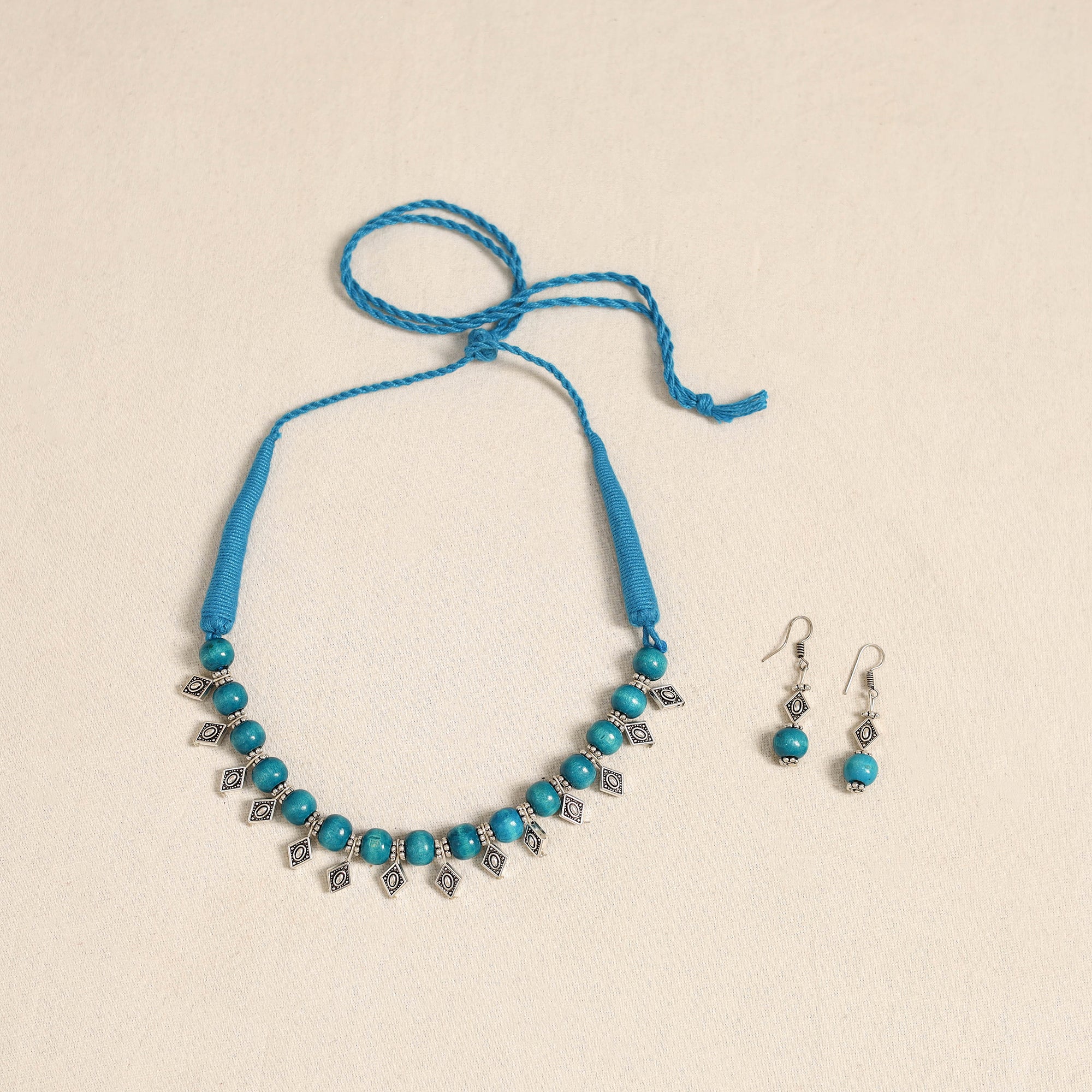 Elevate your ethnic look with this handcrafted blue necklace set, made from german silver and wooden beads. Paired with matching earrings, it’s perfect for festive occasions, cultural events, or adding a distinctive charm to your everyday outfits.
