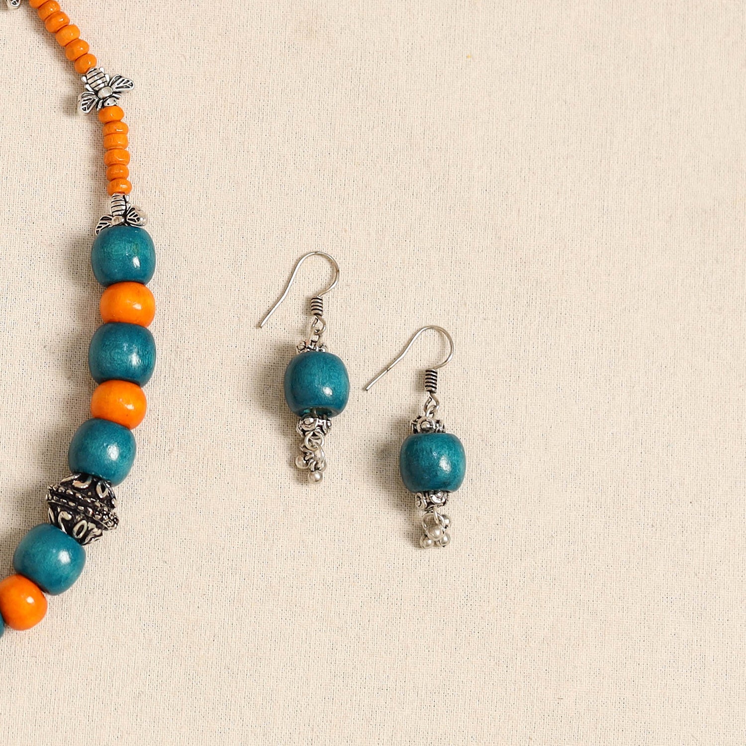 Elevate your ethnic look with this handcrafted blue necklace set, made from german silver and wooden beads. Paired with matching earrings, it’s perfect for festive occasions, cultural events, or adding a distinctive charm to your everyday outfits.