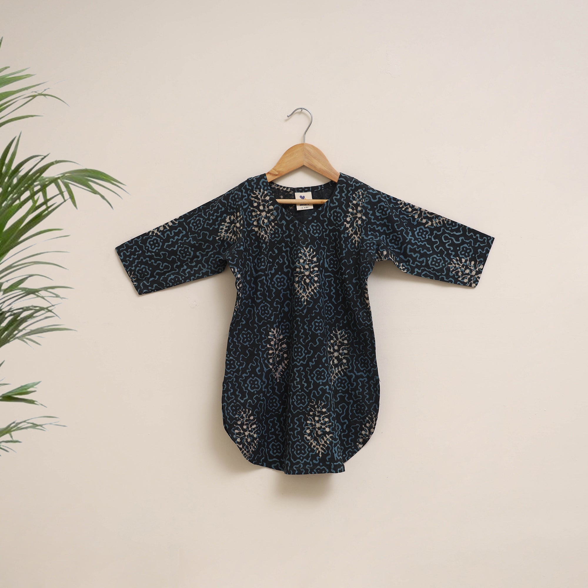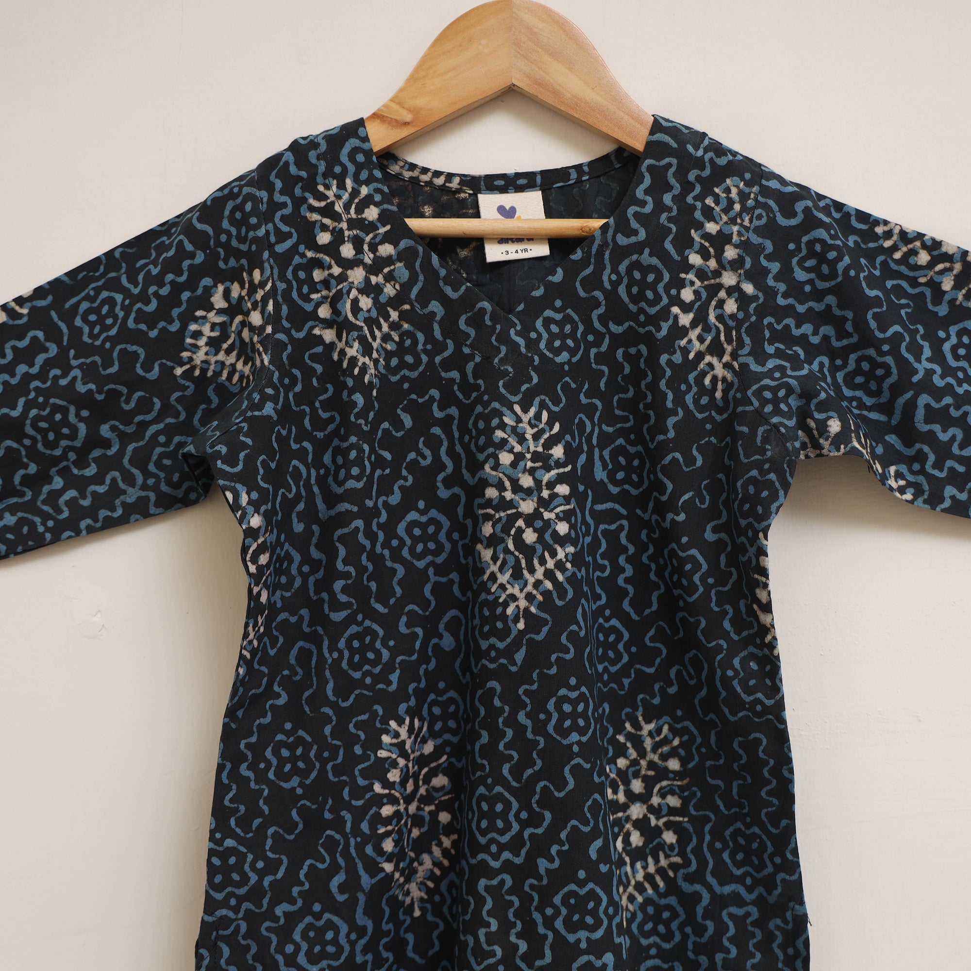 | Material | This girl's blue kurta set paired with matching plain palazzo with an elasticated waistband. Made from 100% pure cotton using the akola hand block printing technique, it is comfortable to wear and gentle on the skin, making it suitable for regular wear or outings. |