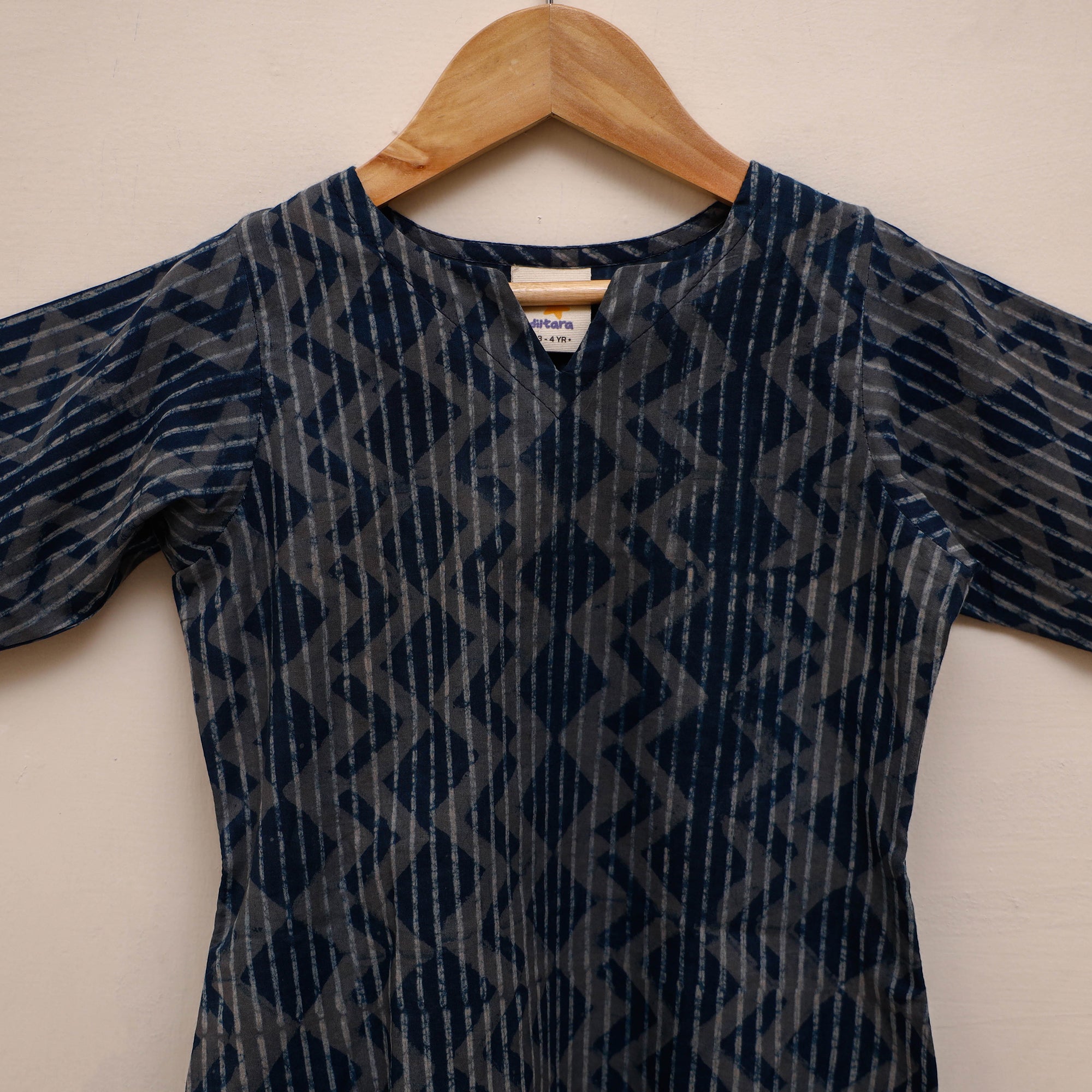 | Material | Girl's kurta set paired with matching plain salwar with an elasticated waistband. Made from 100% pure cotton using the akola block printing technique, it is comfortable to wear and gentle on the skin, making it suitable for regular wear or outings. |