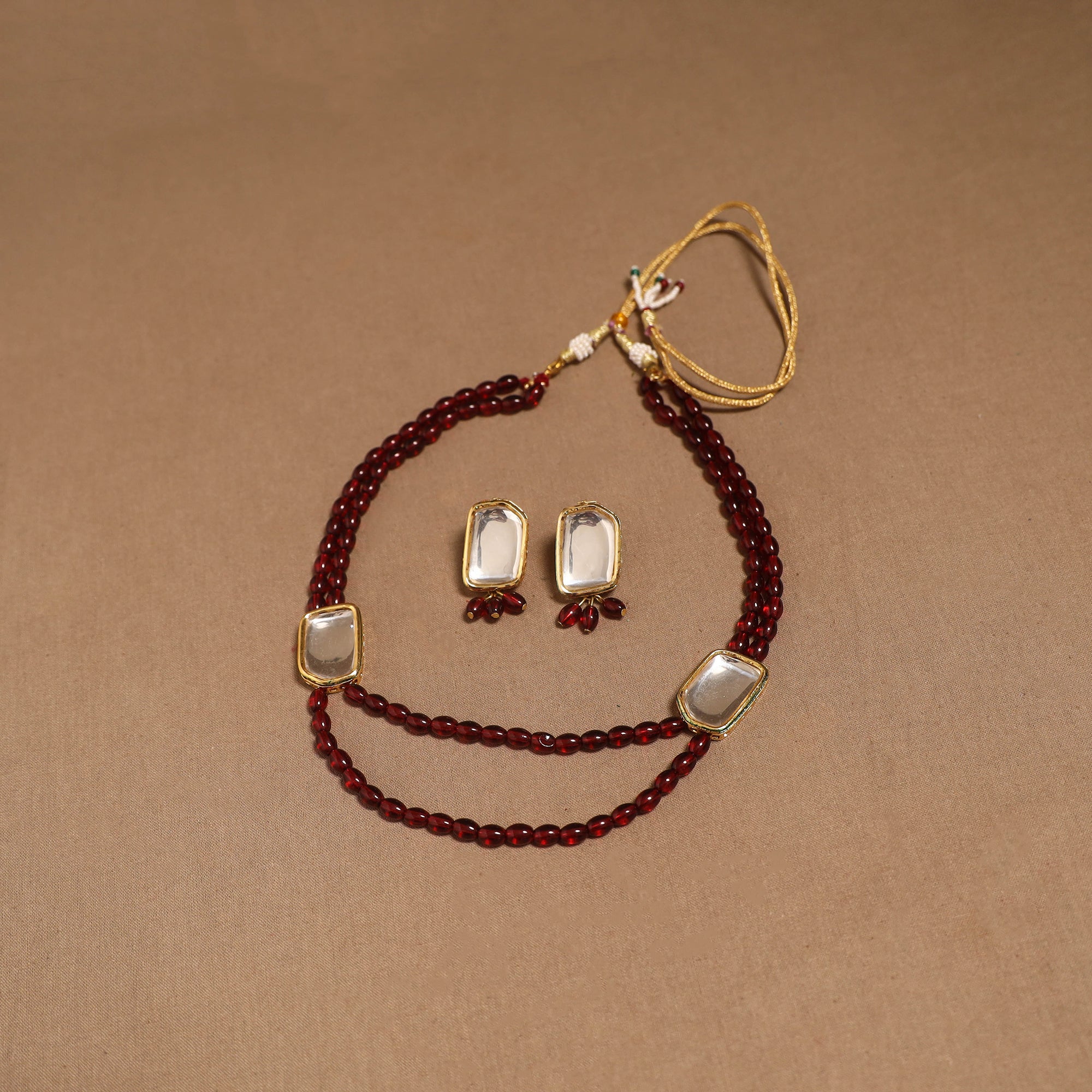 Maroon - Glass Beads Kundan Work Necklace Set 66