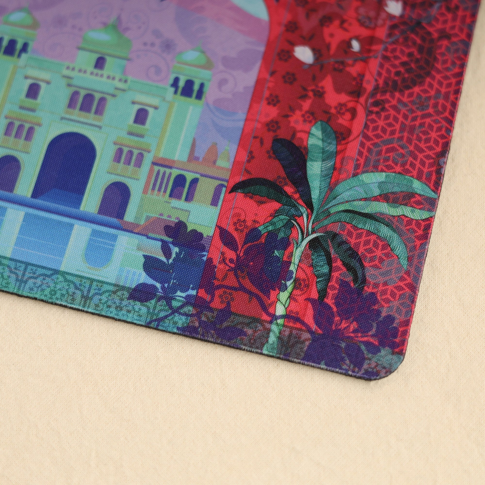 Add a vibrant touch to your desk with this uniquely printed mouse pad by Fatfatiya, crafted in Rajasthan. It features a non-slip rubber base and a soft microfibre surface adorned with designs inspired by Rajasthani heritage. Ideal for office tasks, gaming, or