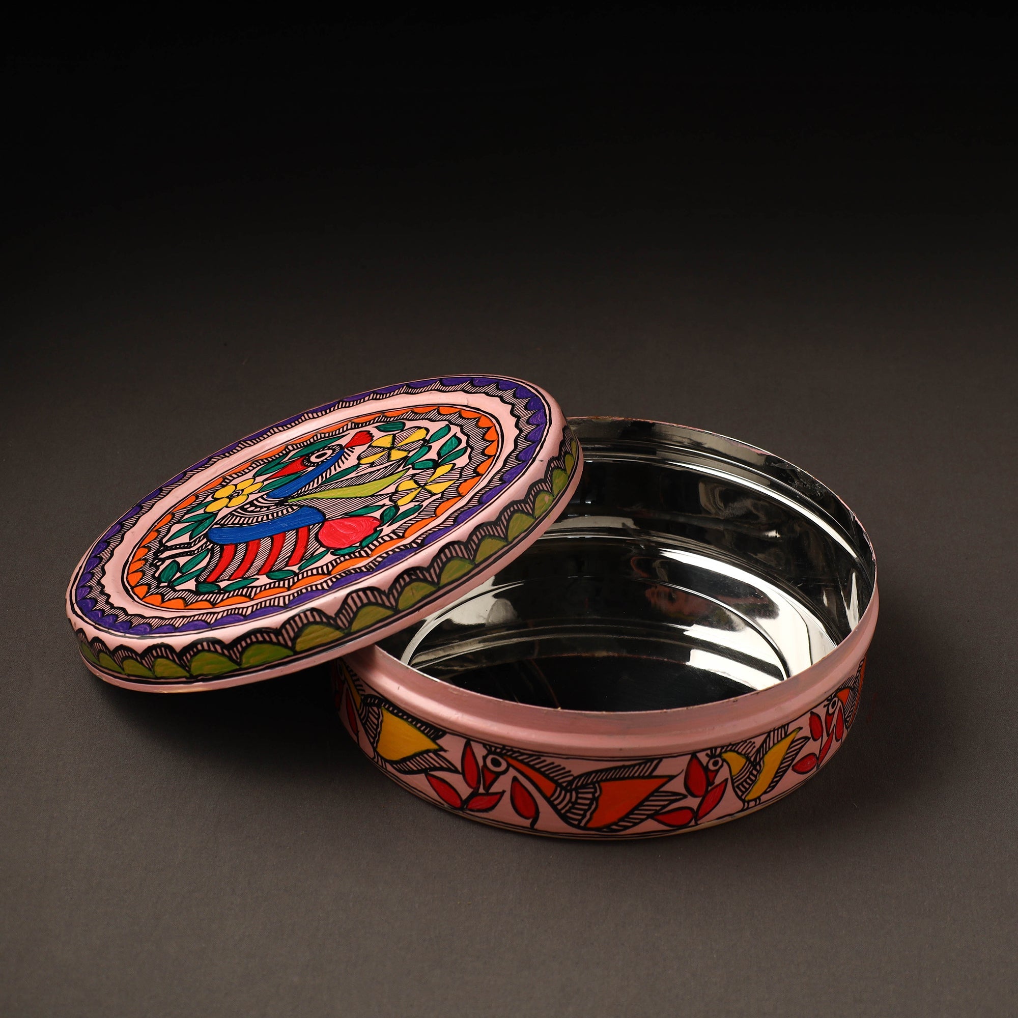 Pink - Godna Madhubani Handpainted Stainless Steel Casserole 10