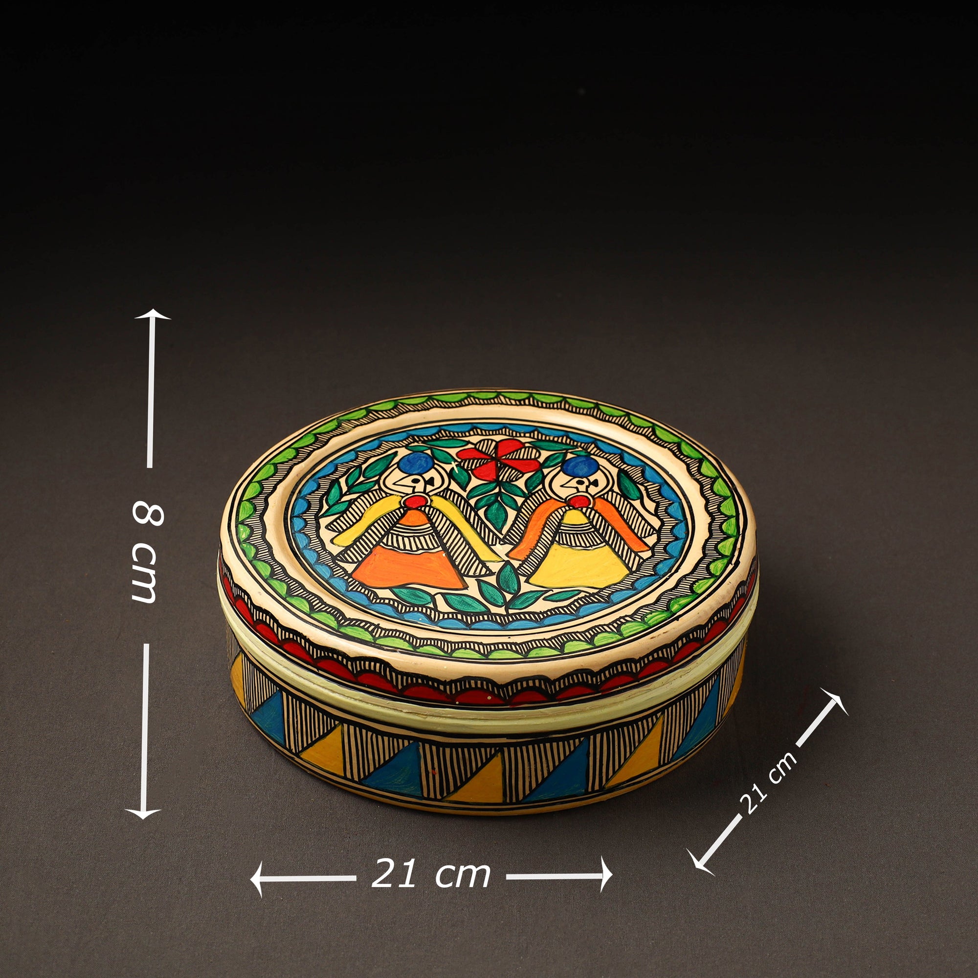Add a splash of tradition to your kitchen with this beige godna madhubani hand painted stainless steel casserole. Meticulously crafted by artisans, this casserole not only keeps your rotis warm but also celebrates rich folk traditions. Built from sturdy stainless steel and painted with waterproof oil-based colors, it offers both charm and functionality