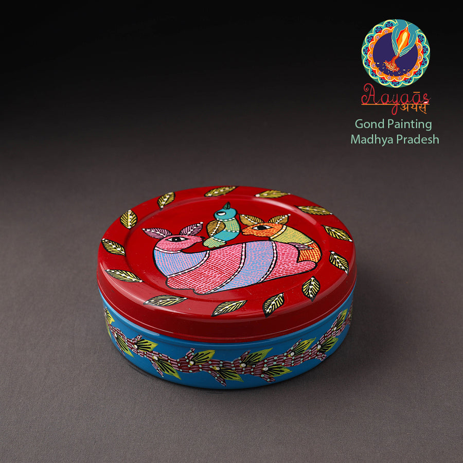Enhance your dining experience with this multicolor gond handpainted stainless steel casserole. Perfect for keeping rotis warm, it blends traditional Indian artistry with everyday practicality. Handcrafted by skilled artisans, the vibrant gond art showcases India's rich heritage. Made from durable stainless steel and painted with waterproof oil-based colors, this roti box is ideal for daily use.