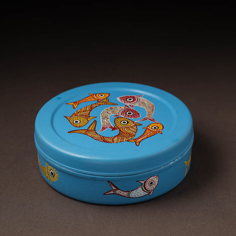 Enhance your dining experience with this blue gond handpainted stainless steel casserole, perfect for keeping rotis warm and fresh. The vibrant gond art, handpainted by skilled artisans, adds a touch of Indian heritage to your kitchen. Made from durable stainless steel with acrylic color, this chapati box is designed for daily use, combining artistry with practicality.