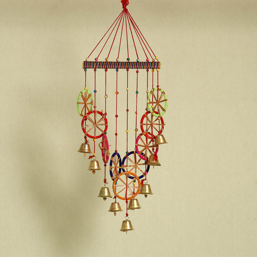 | Material | This beautiful hanging showcases gota detailing and wooden bead, complete with bells that offer a soothing sound. A wonderful choice for gifting or decorating, it adds colour and delight to your home’s doorways, windows, or sacred spaces. |