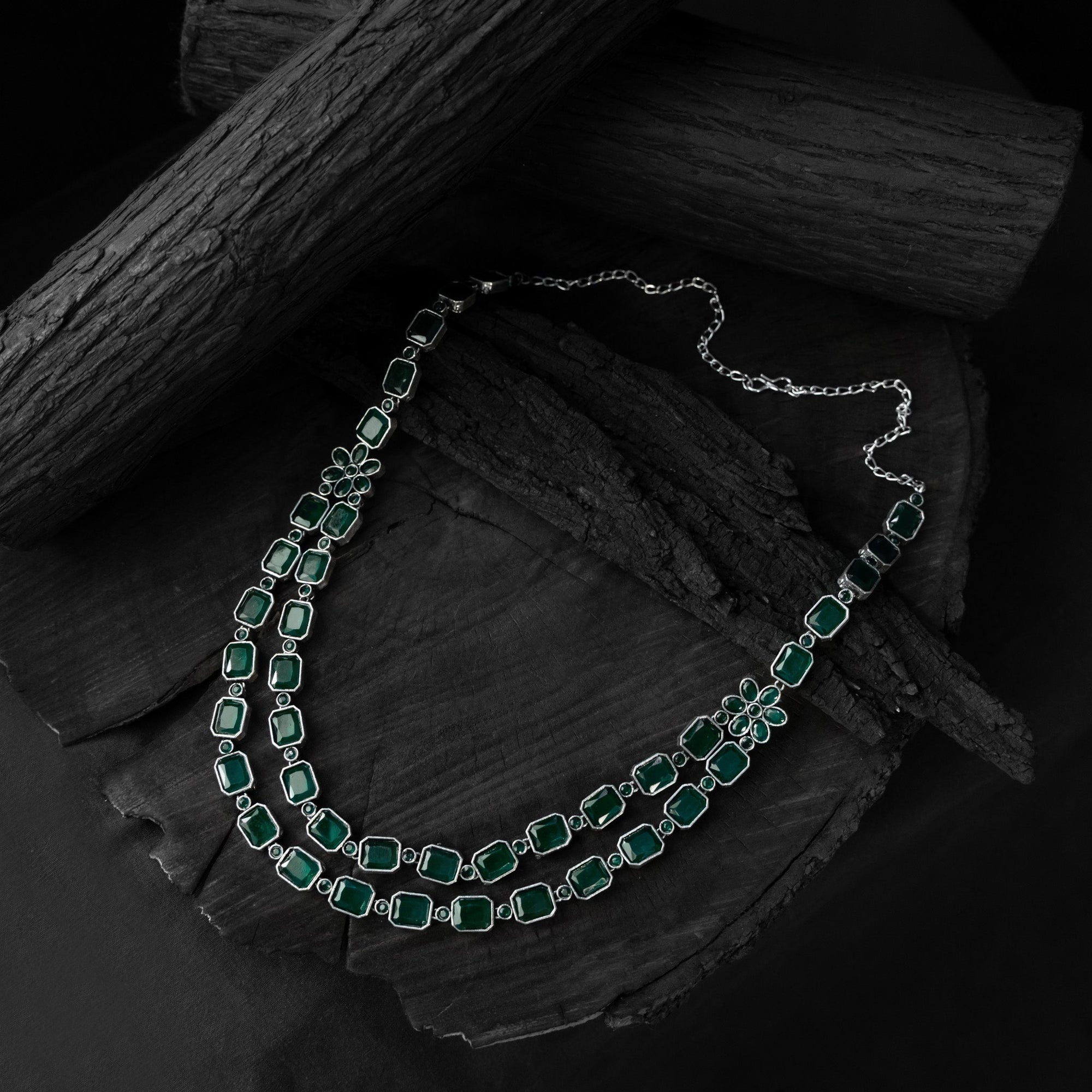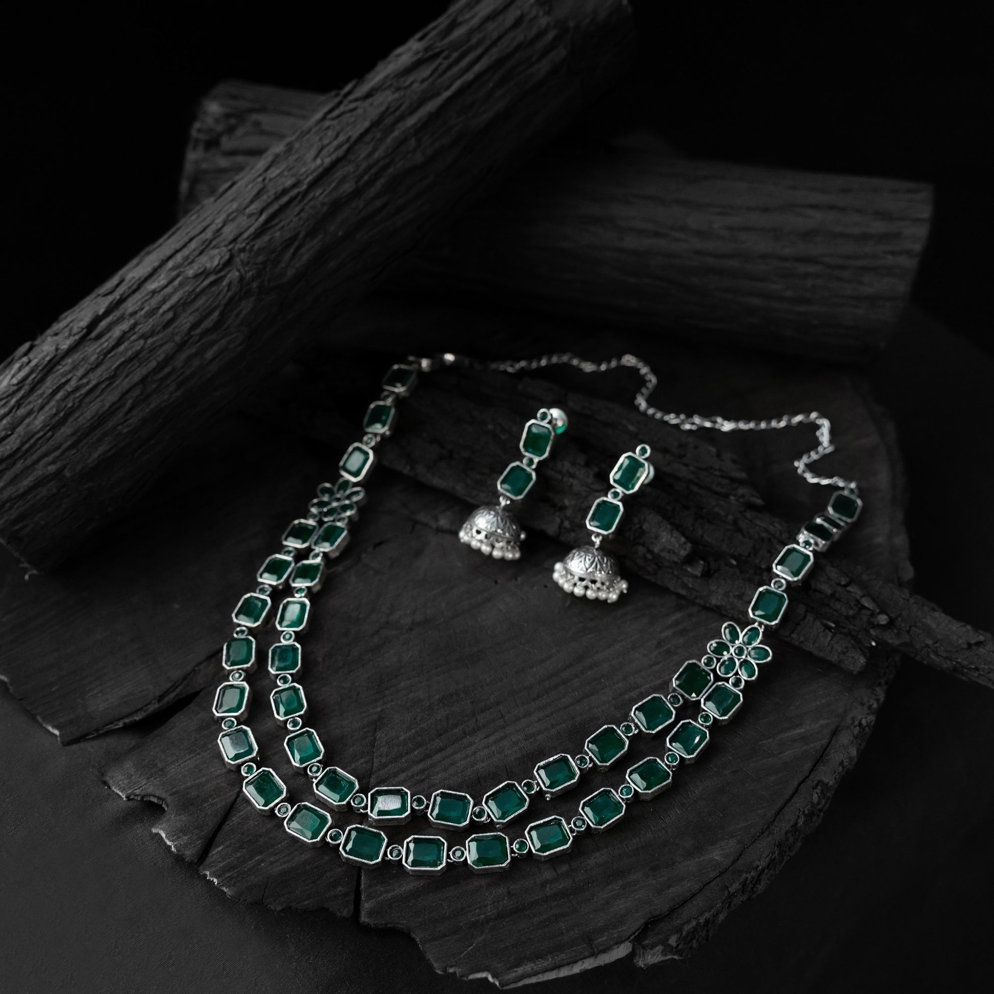 Oxidised green handcrafted necklace set features intricate detailing using varied materials like metal, stones, beads, and artistic motifs. Perfect for festive occasions, weddings, office wear, or casual styling, it pairs beautifully with sarees, kurtas, or contemporary outfits. Complete with matching earrings, this set makes for a thoughtful gift for mother, sister, wife, or girlfriend adding beauty and grace to every special moment.