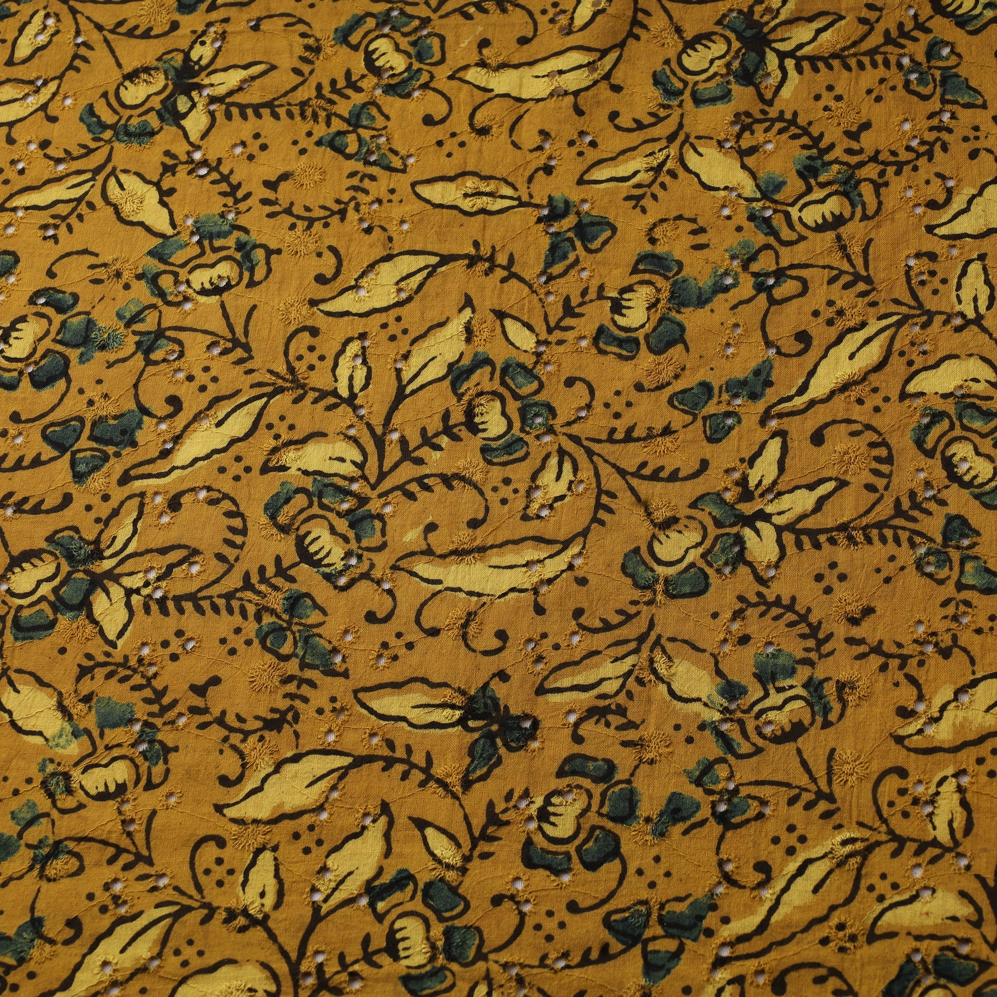 Hakoba natural-dyed embroidered cotton ajrakh print fabric from Kutch, Gujarat. Crafted using natural dyes and a 4,500-year-old resist hand-block printing technique, this fabric blends timeless elegance with everyday comfort. Featuring airy cutwork embroidery and delicate eyelet patterns, hakoba is a beloved choice for blouses, kurtis, sarees and dresses. The soft cotton base ensures breathability, making it ideal for all-day wear.