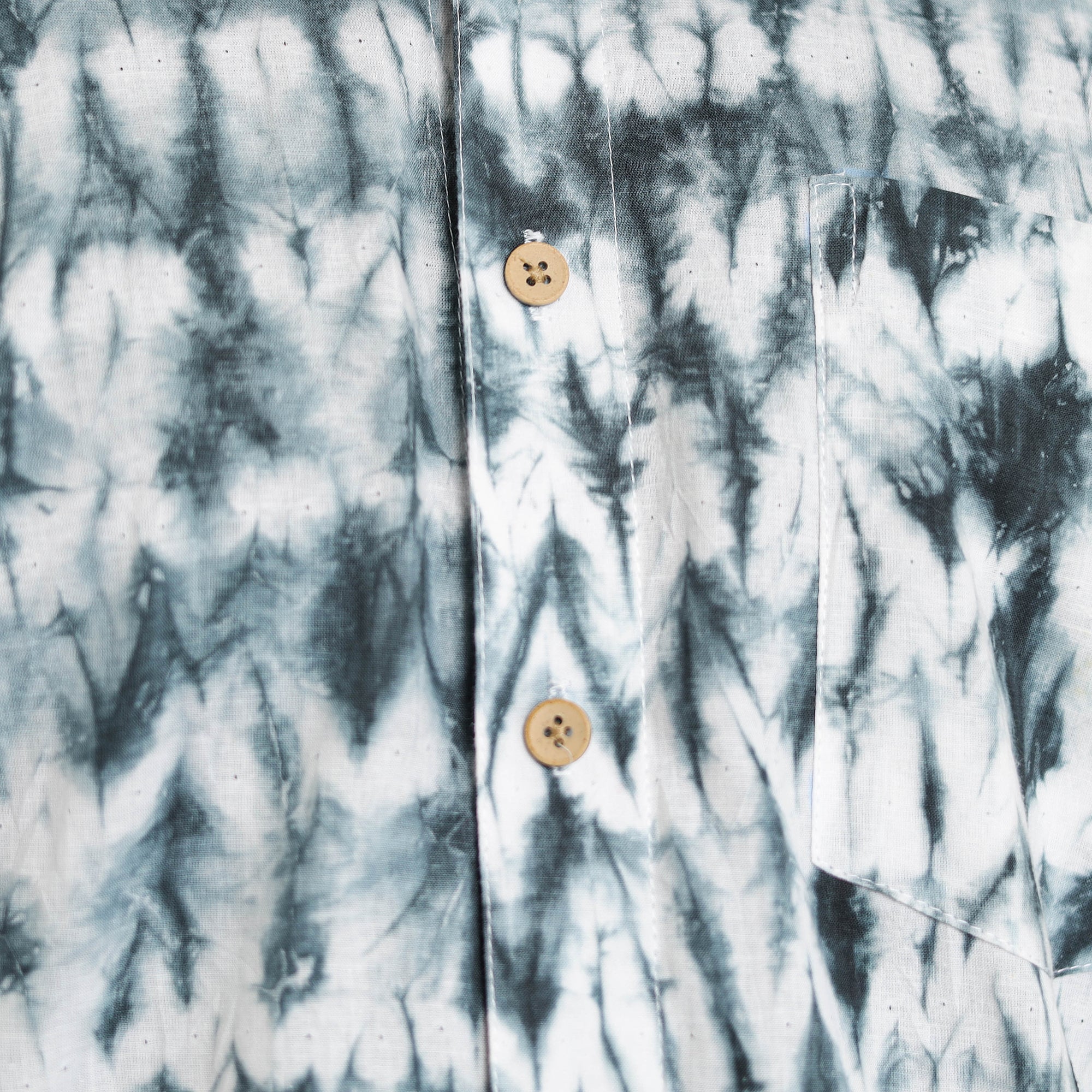 This black half-sleeve tie & dye cotton men's shibori shirt is hand-dyed using the traditional tie-dye method, where the fabric is tied before dyeing to create unique patterns. Made from soft, breathable cotton, it features half sleeves, a patch pocket, and wooden buttons that add a rustic touch. A great pick for relaxed weekends, casual outings, or everyday wear.