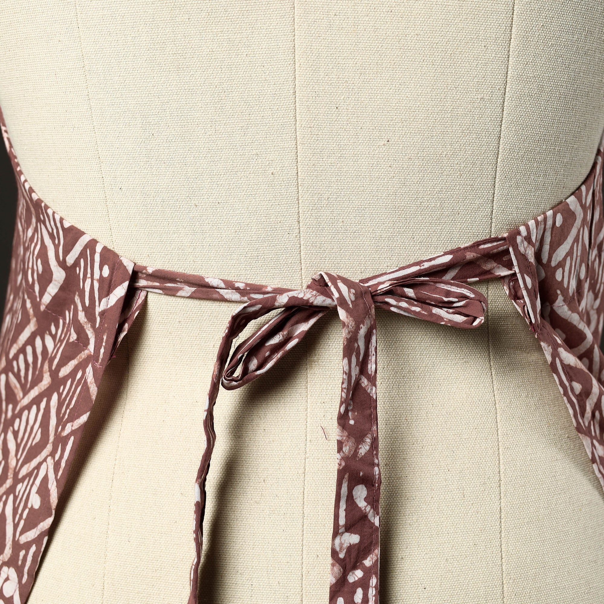 This brown batik print cotton apron with pocket, crafted with traditional batik block printing, combines cultural artistry with everyday functionality. Adorned with batik prints, it features a convenient front pocket and adjustable straps for a comfortable fit. Perfect for cooking, baking, or grilling, this apron adds style and convenience to your kitchen essentials.