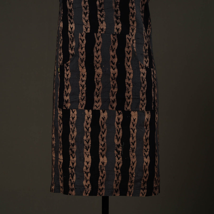 Upgrade your kitchen style with this brown hand batik print cotton apron with pocket, crafted in Kutch using traditional wax-resist dyeing techniques. Made from soft, breathable cotton, it is lightweight. Designed to protect your clothing from splashes and spills, this handmade kitchen apron offers an adjustable neck strap and a front pocket for added convenience, making it ideal for daily cooking and baking.