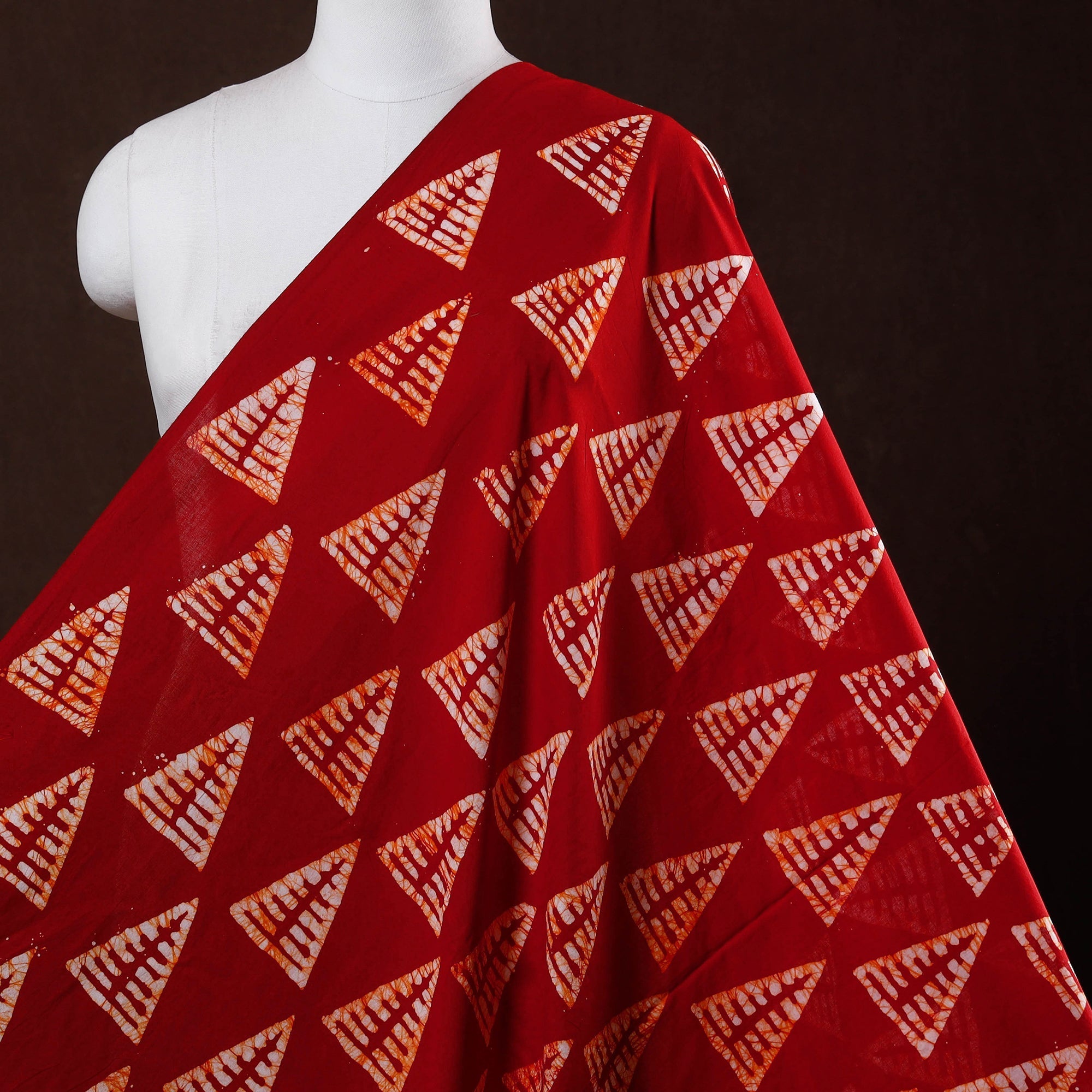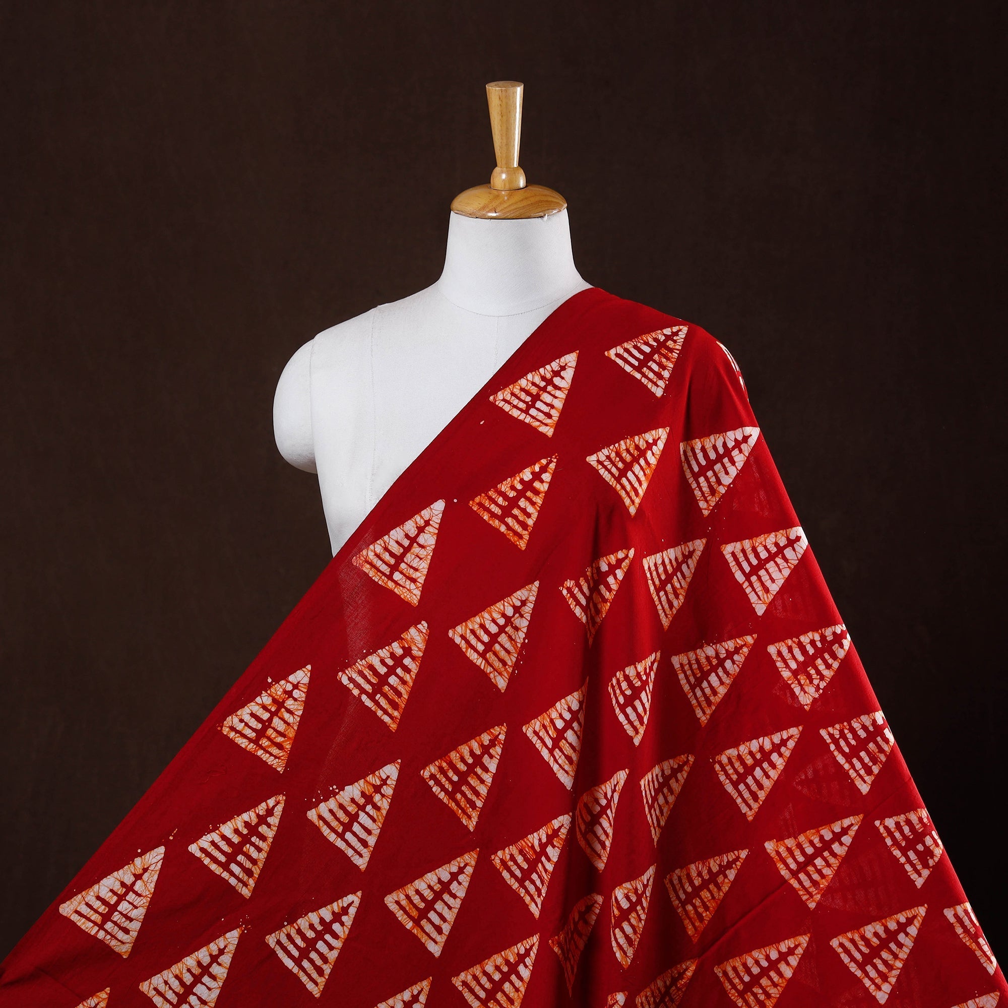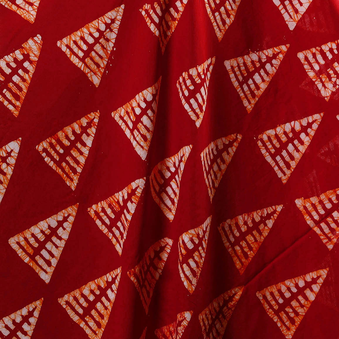 Red hand batik block-printed fabric is created using the centuries-old wax-resist dyeing technique, where molten wax is applied before dyeing to form intricate motifs. Crafted in breathable cotton, it blends durability with comfort, making it ideal for ethnic wear, casual outfits or decor projects.