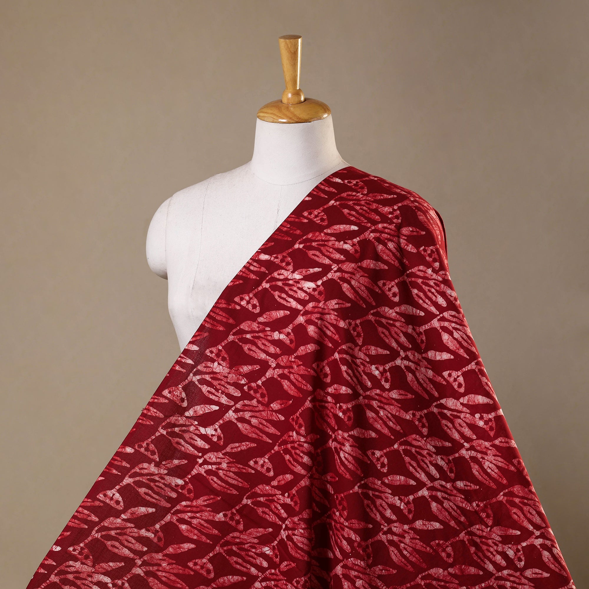 This red hand batik block-printed fabric is created using the centuries-old wax-resist dyeing technique, where molten wax is applied before dyeing to form intricate motifs. Crafted in breathable cotton, it blends durability with comfort, making it ideal for ethnic wear, casual outfits, or decor projects.
