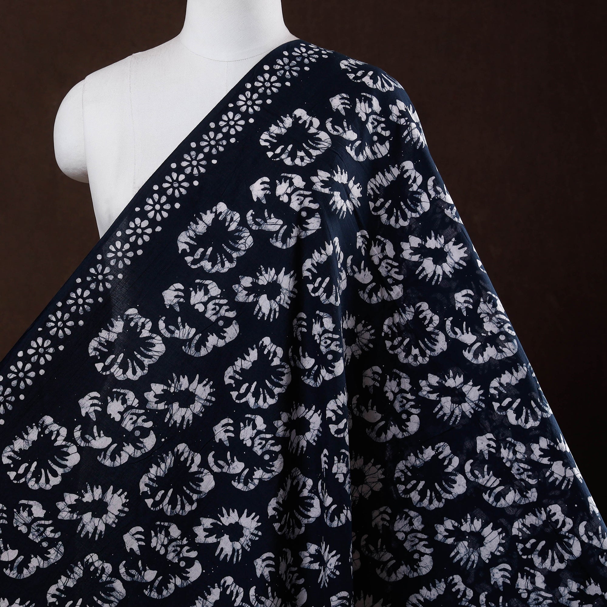 Batik is a very famous technique of wax-resist dyeing applied to whole cloth. The traditional designs and motifs in Indian batik are exceptional. It is a type of resist printing process wherein wax is applied to the fabric in specific areas.